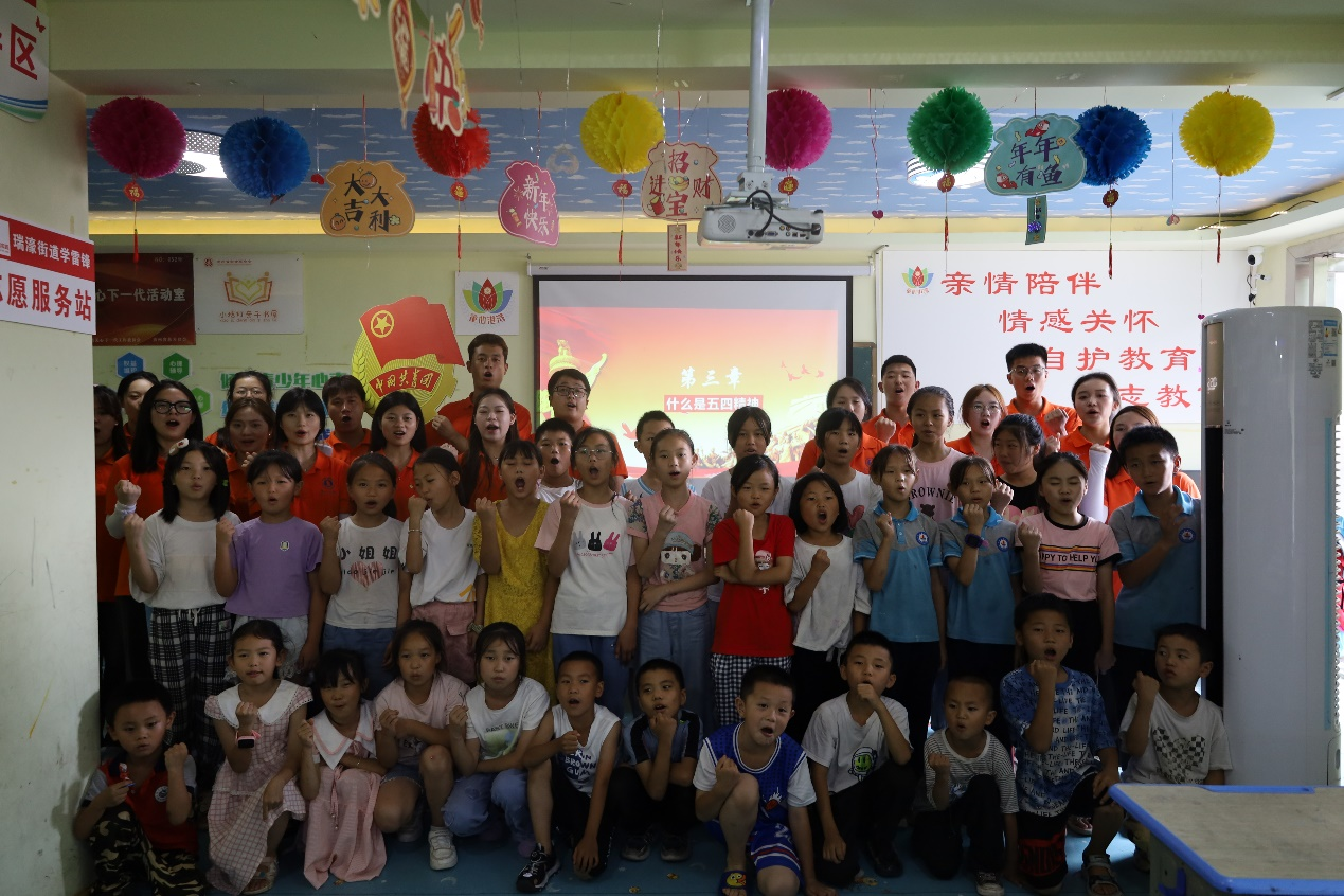“炫美阳光”志愿服务队在正安县瑞濠移民安置区“希望小课堂”留影