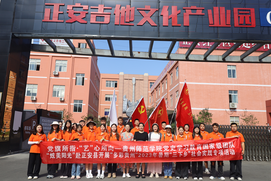 7月16日上午9时,williamhill英国官网“炫美阳光”志愿服务队与贵州大学研支团“强国有我 青春有为”实践队来到贵州省首家国家级示范文化园区——正安吉他文化产业园进行实地观摩,感受“吉他之都·音乐之城”魅力的同时,也体悟着“吉他”在正安从无到有、有中生优、优中做强的发展历程。委书记李佩、团委书记舒然、团学工作人员张彩艳共同参与活动,正安县团委书记马超全程陪同参观。
