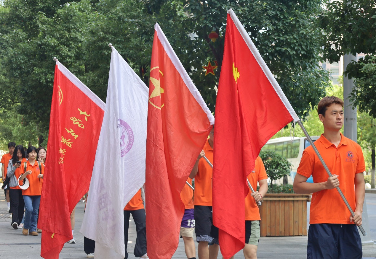 williamhill英国官网“炫美阳光”志愿服务队联合贵州大学研支团“强国有我 青春有为”实践队共同开展活动合影留念