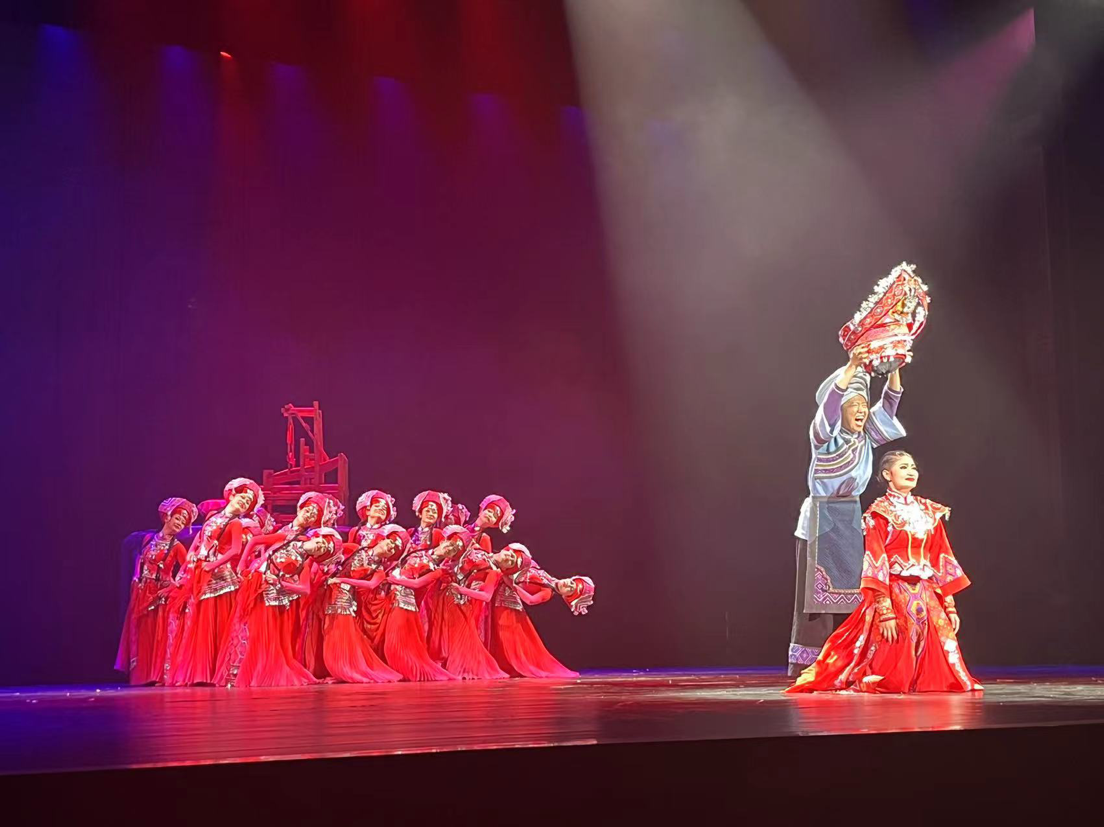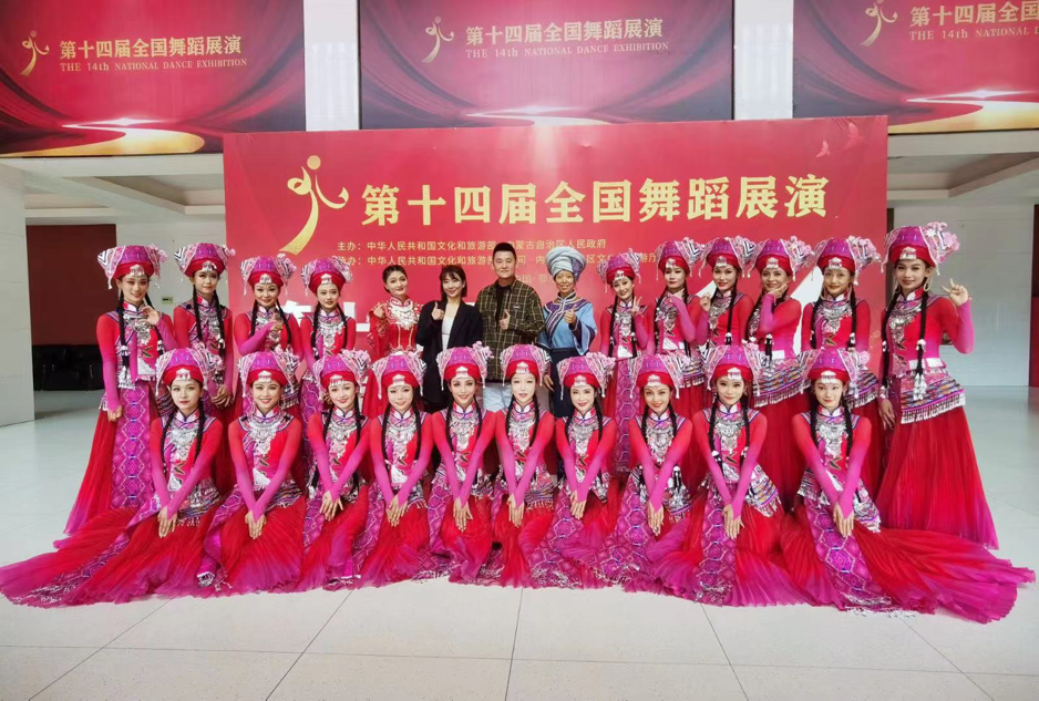 7月6日晚,由文化和旅游部、内蒙古自治区人民政府主办,文化和旅游部艺术司、内蒙古自治区文化和旅游厅、鄂尔多斯市人民政府承办的第十四届全国舞蹈展演在鄂尔多斯市开幕。受贵州省民族歌舞团的邀请,williamhill英国官网选派10名舞蹈专业员工加入民族歌舞团参演团队,于7月12日至16日期间参与贵州省报送参演舞蹈节目——《嫁》的排练,并作为贵州省唯一的代表队与贵州省民族歌舞团的专业演员一同参加了第十四届全国舞蹈展演。此次公司选派参演的员工有:杨秀萍、张懿、杨政欣、罗奕涵、彭雨轩、袁静蕾、余佳晓 、杨玉丹、杨佳佳、刘玥园,由舞蹈系黄河、高蕾两位老师带队。
