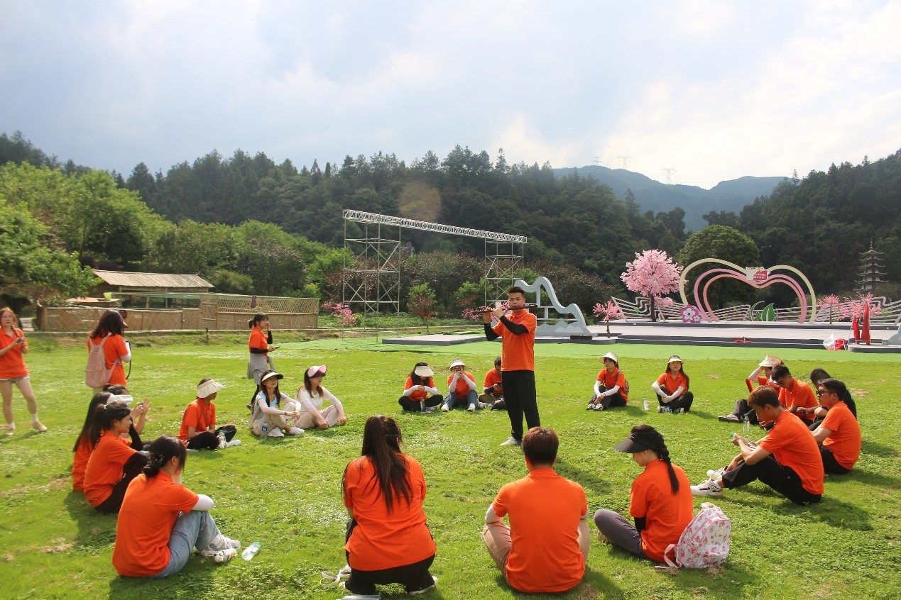 走进景区别出心裁、精心打造,集休闲、旅游、研学为一体的田园生活体验区,更是让全体师生为党的十八大以来党和国家取得的历史性成就、发生的历史性变革,在新农村建设中的体现而感叹、折服。随后,“炫美阳光”志愿者们将心中的万千感慨幻化为歌舞乐,与“桃花源”绿水青山浑然一体,表达对党的崇敬以及家国的热爱。