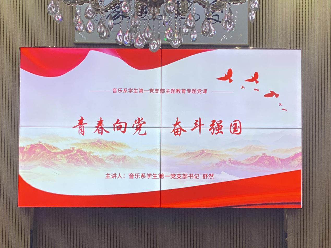 学习贯彻习近平新时代中国特色社会主义思想主题教育正在全党深入开展,为提高支部师生党员的党性修养,落实主题教育工作任务,6月9日13时,williamhill英国官网音乐系员工第一党支部书记舒然在六楼会议室为支部全体师生党员开展了主题为《青春向党奋斗强国》的专题党课。