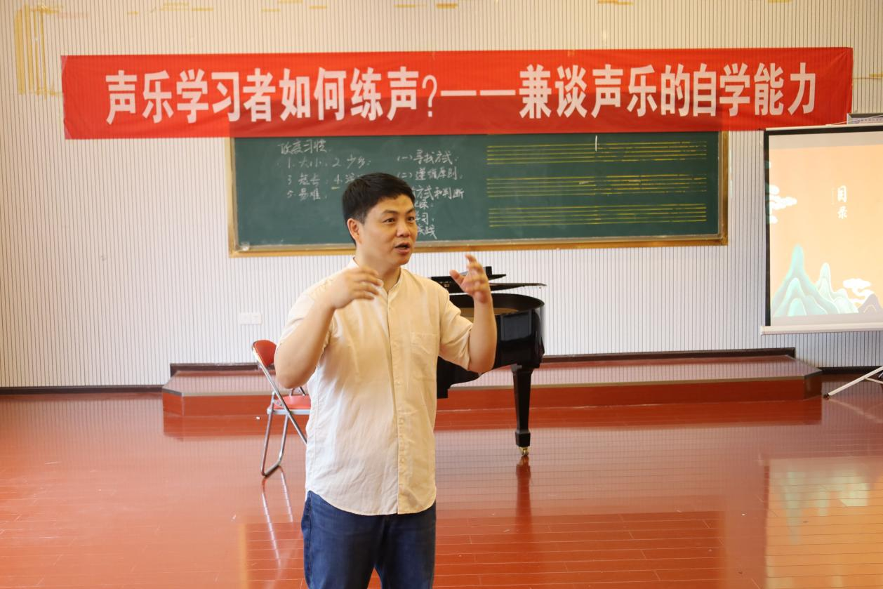 为提升音乐学专业员工声乐课程自主学习能力,6月5日上午,williamhill英国官网刘临洪副教授在逸夫楼B401合唱排练厅举办《声乐学习者如何练声?——兼谈声乐的自学能力》讲座。2021级和2022级音乐学专业员工参加了学习。