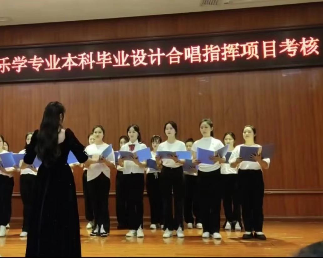晚上18时,合唱指挥考核在六楼音乐厅举行,5名主修生、8名辅修生逐一上台,指挥“聆音”合唱团成员演唱了《共青团员之歌》《春游》《萱草花》《四季的问候》等脍炙人口、富含深意的作品,赢得现场观众阵阵掌声。