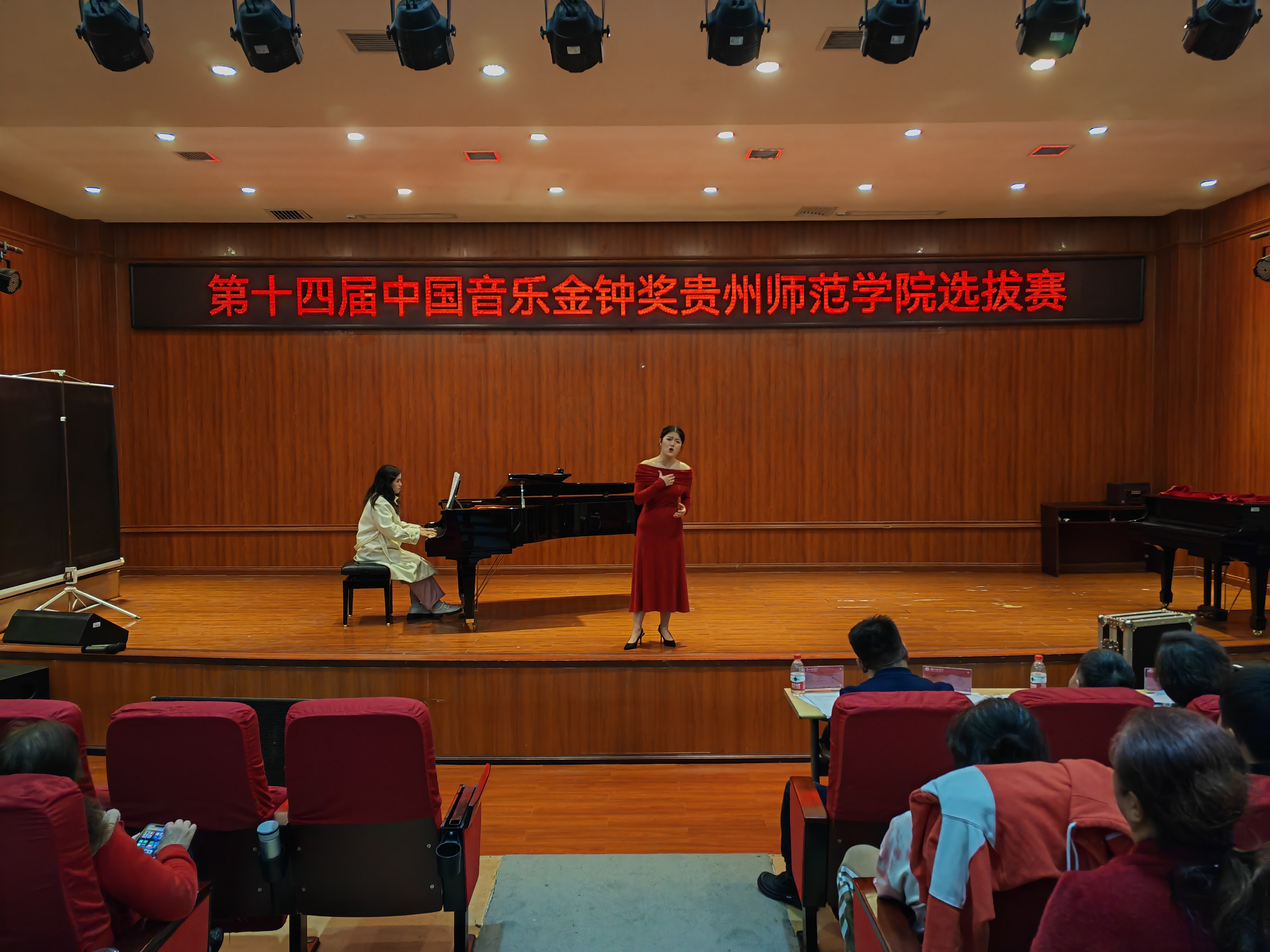 本次选拔赛设置声乐美声组和声乐民族组,有28名各年级员工参加了比赛。比赛结束后,声乐教研室主任王铎老师为大家演唱《大江南》,现场掌声雷动,起到了很好的示范作用。