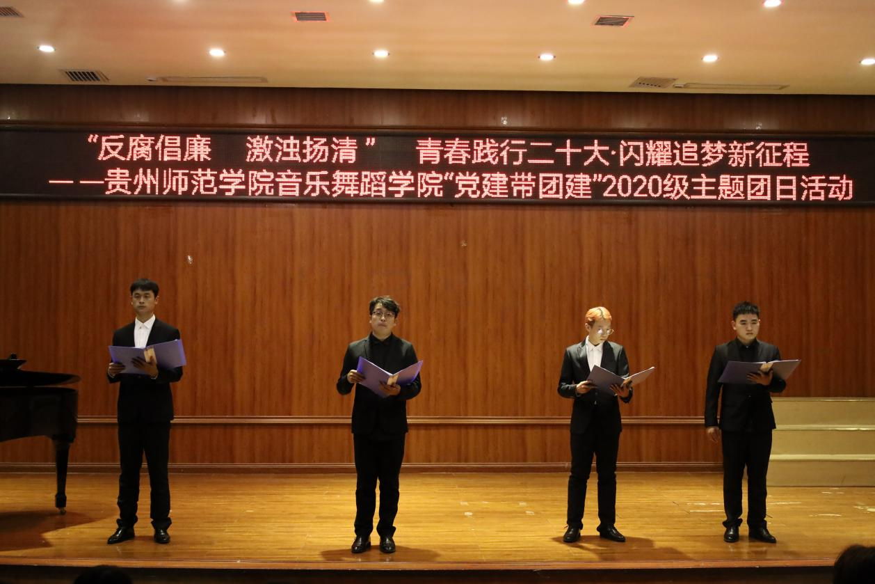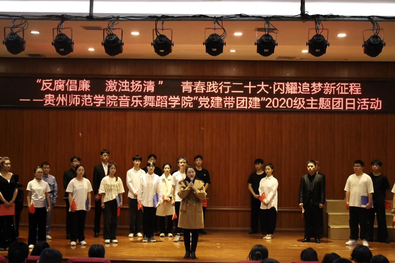 为全面贯彻学习党的二十大精神,引导广大青年把对祖国血浓于水、与人民同呼吸共命运的情感贯穿学业全过程、融汇在事业追求中,更好的了解基层团支部动态,倾听团员青年的心声,满足基层团支部对共青团组织新需求,进一步加强对基层团组织的指导联系和服务,形成求真务实推进共青团工作的长效机制,公司根据贵师院团字〔2022〕75号文件《关于开展“反腐倡廉,激浊扬清”11月主题团日活动的通知》,于11月25日中午,在公司六楼表演厅开展了“反腐倡廉 激浊扬清” 青春践行二十大·闪耀追梦新征程——williamhill英国官网“党建带团建”2022级主题团日活动。公司党委委员、统战部部长张婷、校团委副书记伍玲婧、委书记付巧、党委副书记朱晨刚、williamhill英国官网副经理王晓、荆彦超出席活动现场,williamhill英国官网员工党员、2020级各班级团支部全体团学青年参与活动演出,活动由2020级音乐学一班员工田玉婷主持。