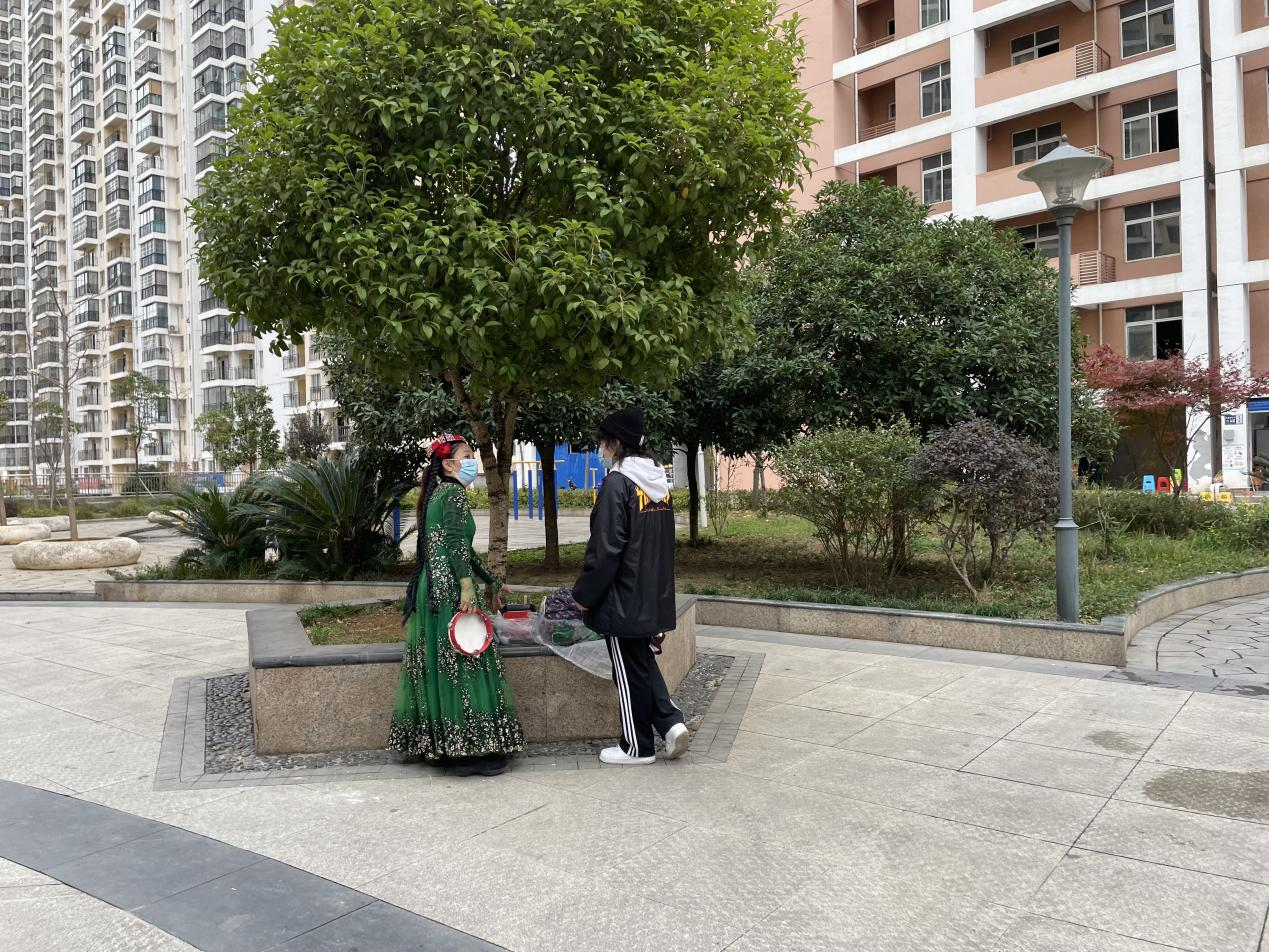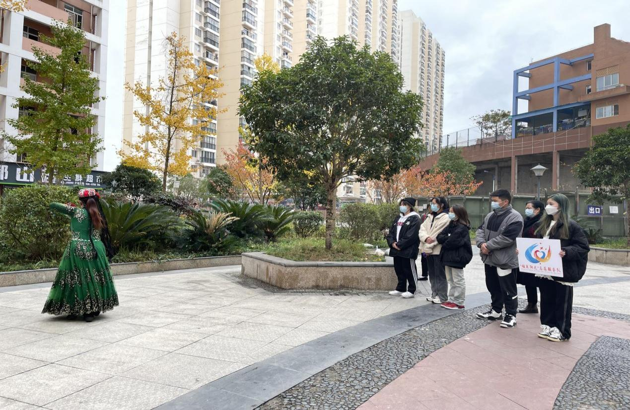 同学们与社区居民共同交流学习“金课”——维族舞蹈