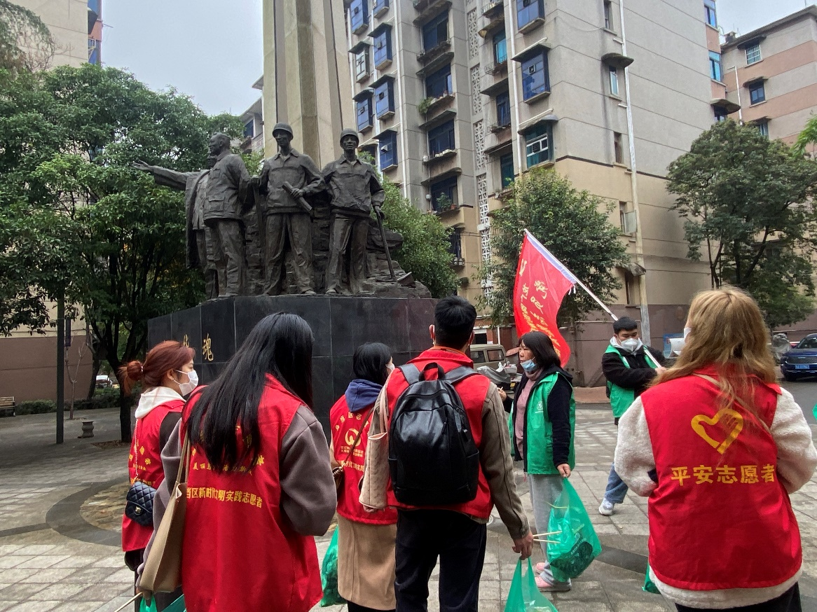 首先,胡欣、何小芬带领党团青年参观了“振华魂”雕像,生动讲述了热血青年构筑“振华魂”的感人故事,同学们纷纷为干惊天动地事,做隐姓埋名人的振华精神所感动,立志也要将汗水挥洒在平凡的事业中,把青春践行在志愿服务的大地上。随后,同学们分小组,依次开展了党的二十大知识社区调研、慰问五老、开展环保劳动教育等实践活动。员工党员通过社区一对一走访调研,生成调查报告,拟定二十大宣讲方案;团学青年以身作则,一边清理和分拣社区垃圾,一边开展环保宣传、垃圾分类知识普及工作;“炫美阳光”志愿者则在社区工作人员带领下对辖区内的五老群体进行慰问,践行爱老敬老精神,弘扬中华优秀传统美德。最后,历时一天的活动在同学们与社区民众合唱《我和我的祖国》歌声中圆满结束。