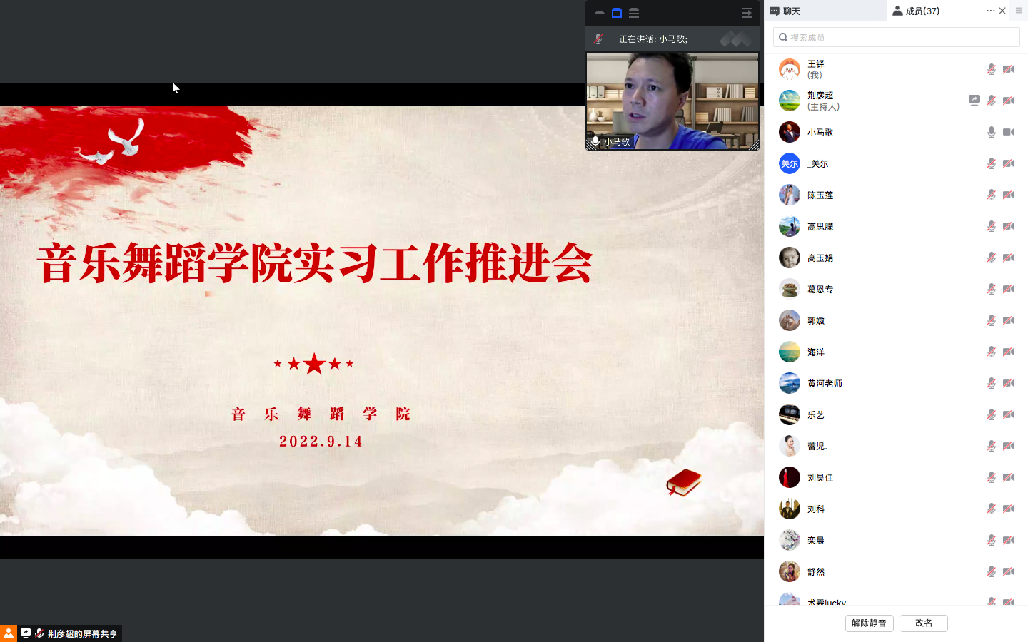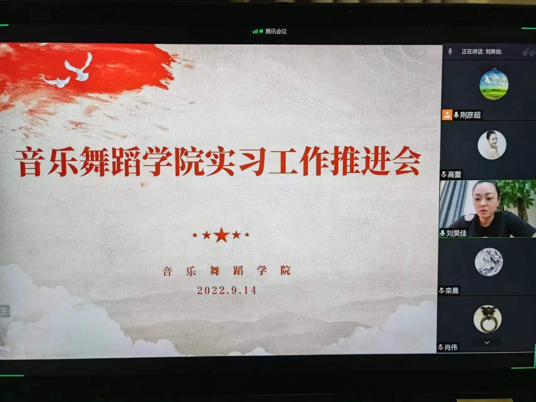 会上,实习工作负责人王铎对本届实习工作的情况进行了通报;副经理王晓、舞蹈系主任肖伟、音乐系主任刘昊佳及部分实习指导老师针对目前因疫情滞留在校员工的实习内容安排做了交流和分享。副经理荆彦超要求各指导教师务必加强实习指导工作,通过实习生指导群建立日联络制度,针对自己指导的员工,摸清情况,做到底数清、工作明。同时,还要求各指导教师按计划进行实习指导,规范填写指导手册。