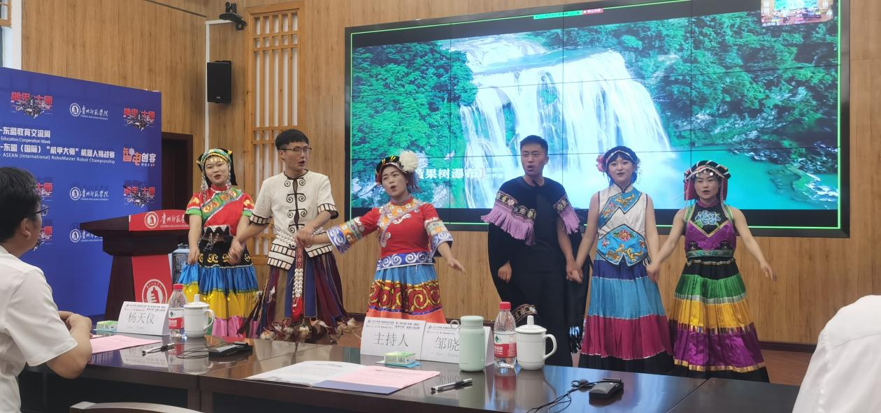 8月26日,由公司主办的中国—东盟(国际)“机甲大师”机器人挑战赛开幕式在印山书院举行。williamhill英国官网团委组织2020级、2021级音乐学专业少数民族员工,编排了彝族丰收歌、苗族飞歌、侗族大歌等丰富多彩的少数民族暖场节目,在线上与来自国内高校、东南亚国家的同学们展开互动,成为比赛过程中一道亮丽的风景线。