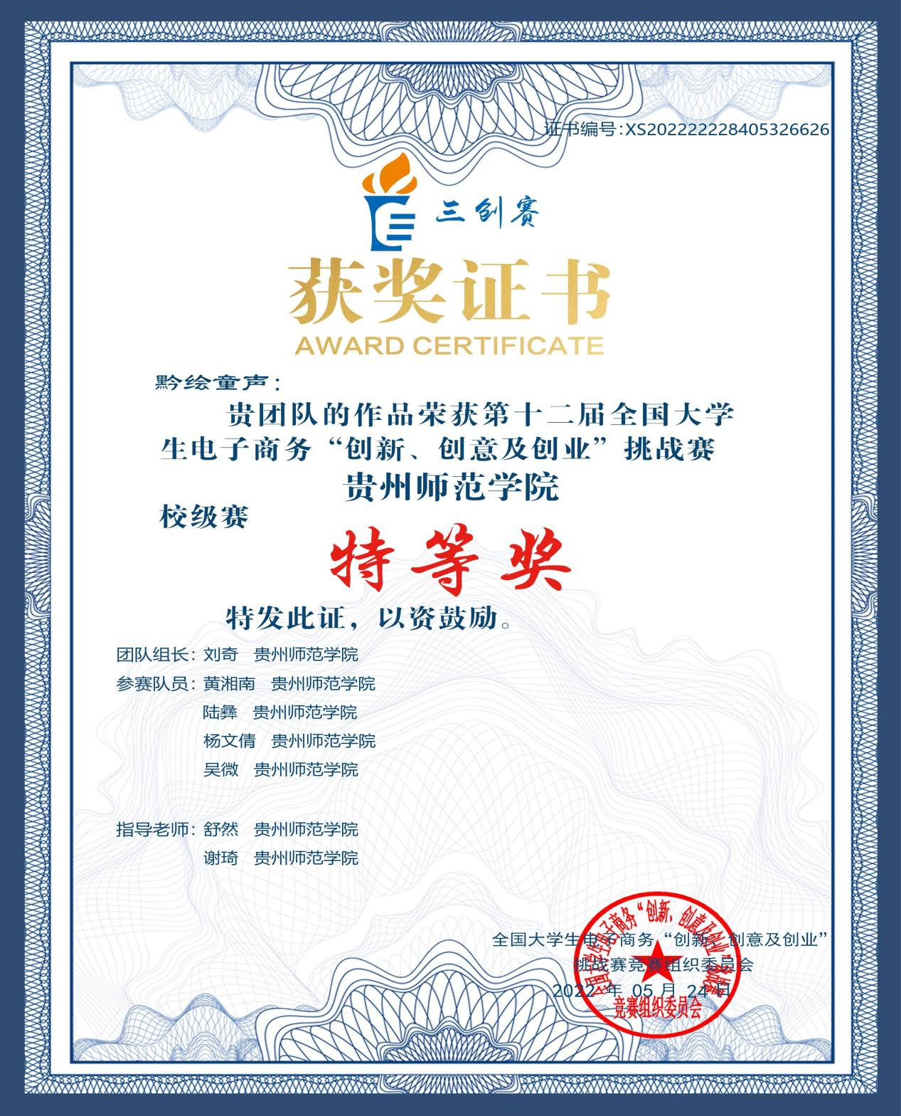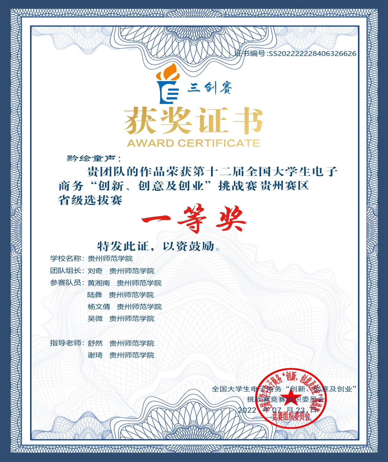 2022年6月12日,第十二届全国老员工电子商务“创新、创意及创业”挑战赛贵州赛区省级选拔赛在贵阳人文科技公司举行。经过2天激烈的角逐,最终,公司“黔绘童声”项目斩获一等奖。