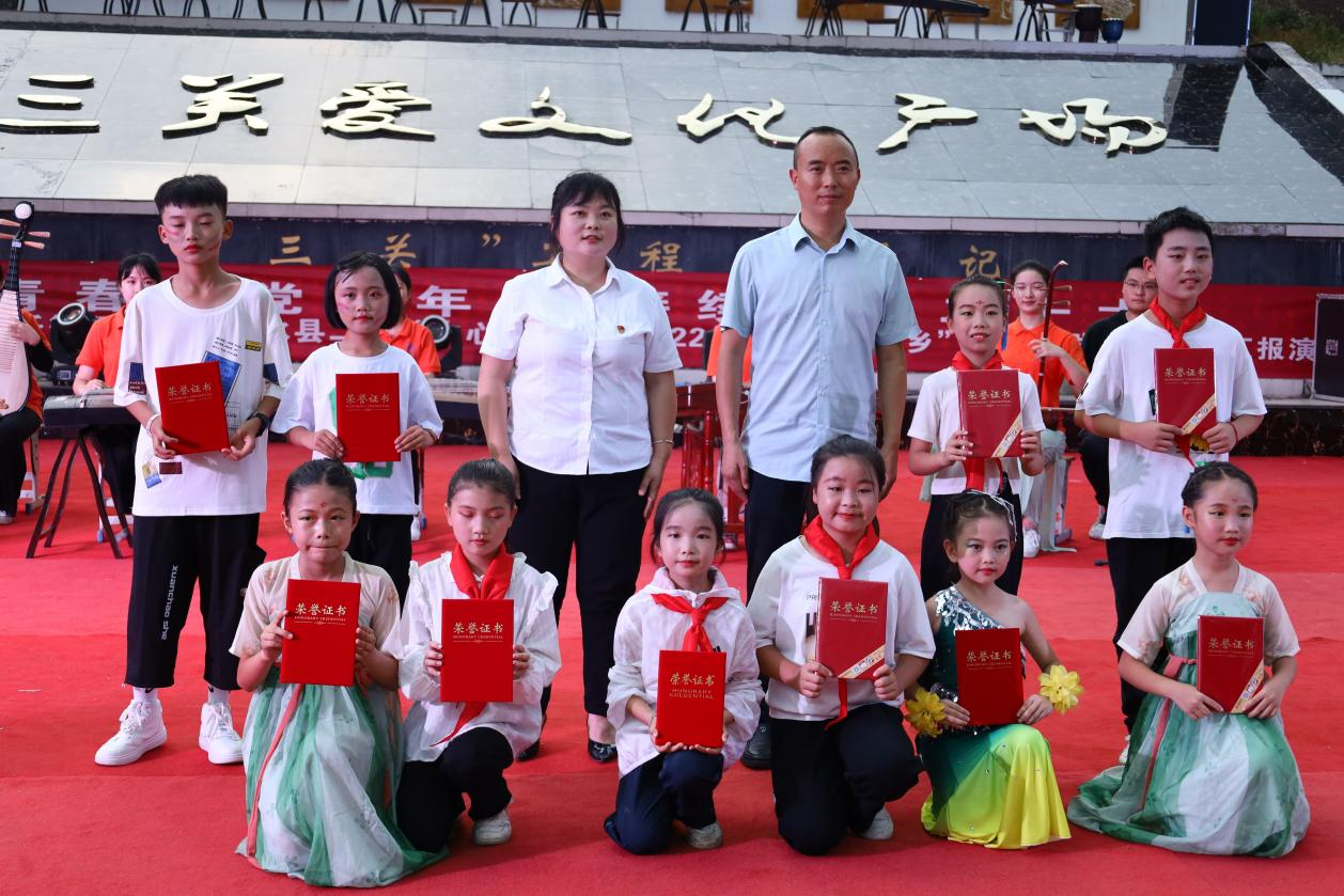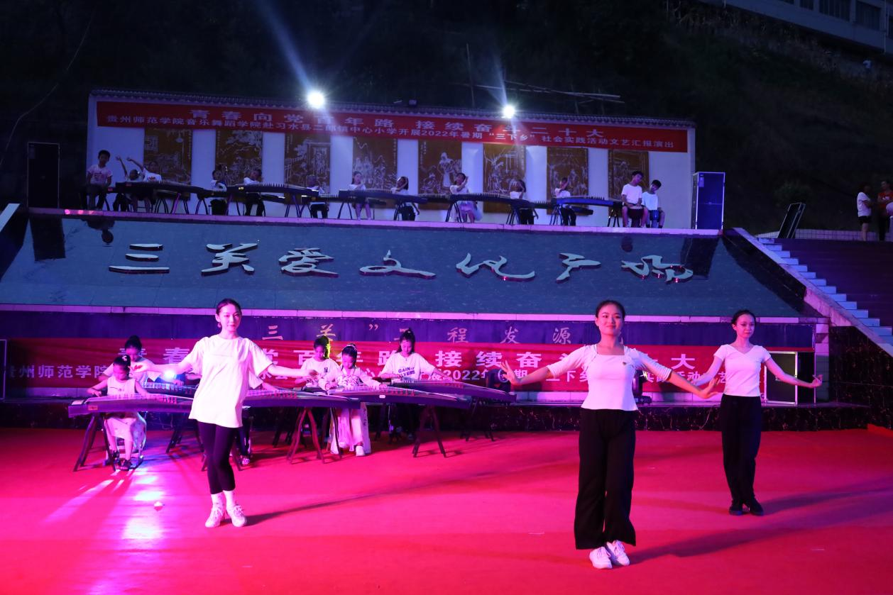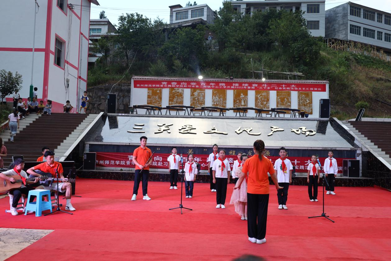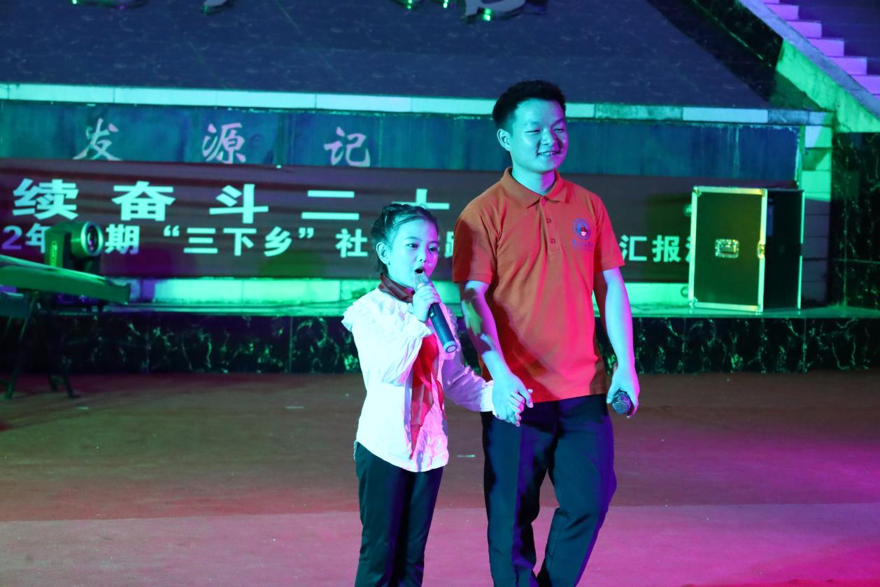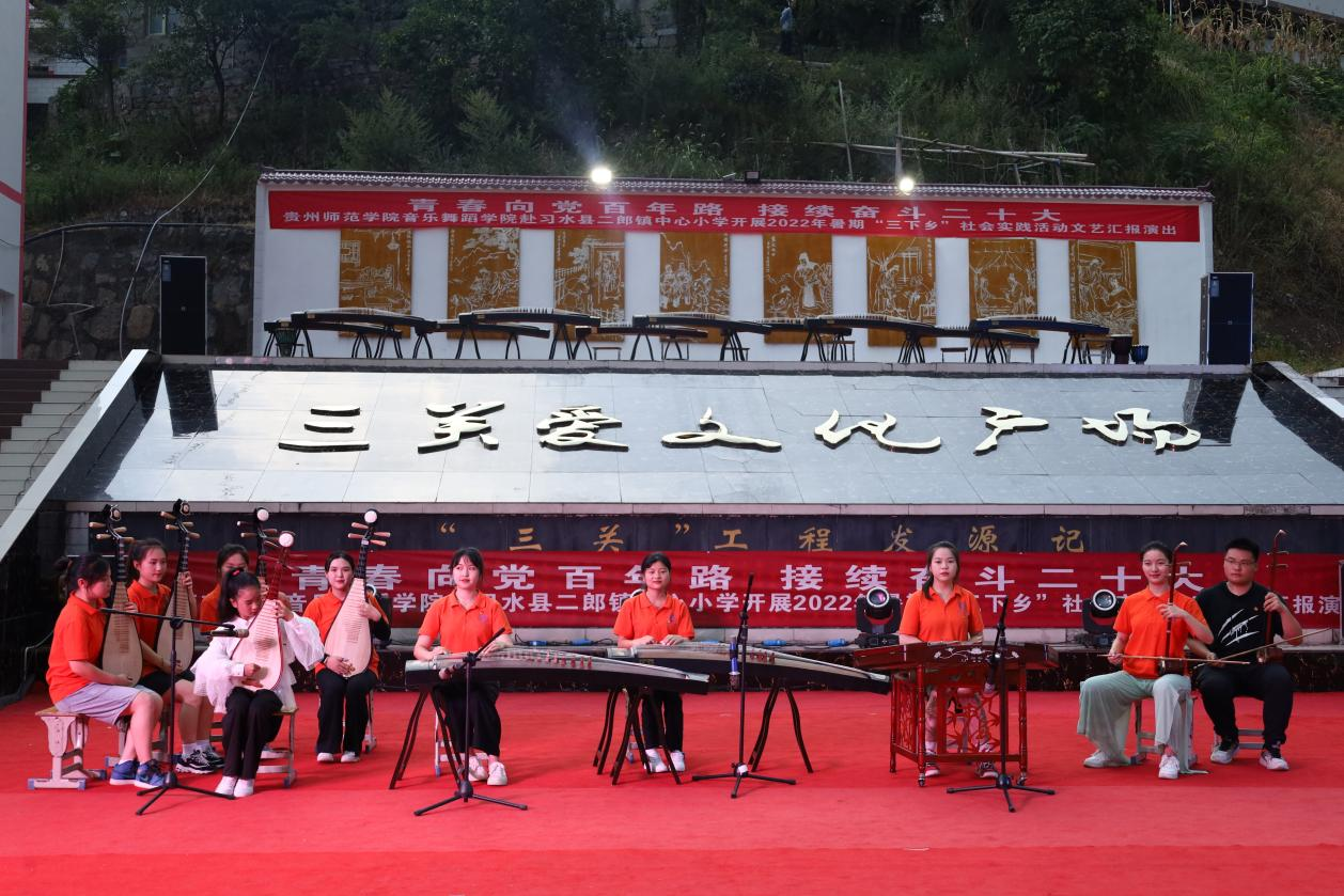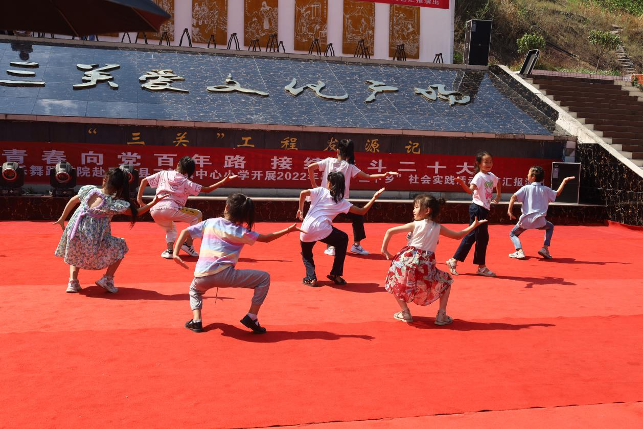 7月25日晚7时,williamhill英国官网赴习水县二郎镇中心小学开展2022年暑期“三下乡”社会实践活动文艺汇报演出在二郎镇大桥村“三关爱文化广场”隆重举行。整场晚会以“青春向党百年路·接续奋斗二十大”为主题,串联起“最‘炫’二郎风”“党旗与山水交相辉映”“‘艺’起向未来”三个篇章,节目涵盖独唱、重唱、合唱、器乐独奏、民乐合奏、双人舞、群舞等多种形式。williamhill英国官网委书记付巧、中共二郎镇人民政府副镇长段逢援、习水县教育体育局双减办主任张光平、外宣中心主任许德奎、基教科领导胥乾坤,习水县二郎镇中心小学党支部书记、董事长瞿小川,党支部副书记、副董事长周飞,副董事长张林、钟伦,总务处主任刘鑫、音乐学科负责人涂仁明,习水县二郎镇中心幼儿园经理燕蓉、williamhill英国官网团委书记舒然、党政办公室负责人孙芙炬、团学工作老师张彩艳等相关单位负责同志出席活动。williamhill英国官网28名志愿者、二郎镇中心小学86名员工参与演出,现场近千名群众观看,“炫美阳光”志愿者田玉婷和二郎镇小员工钟语晨担任晚会主持。