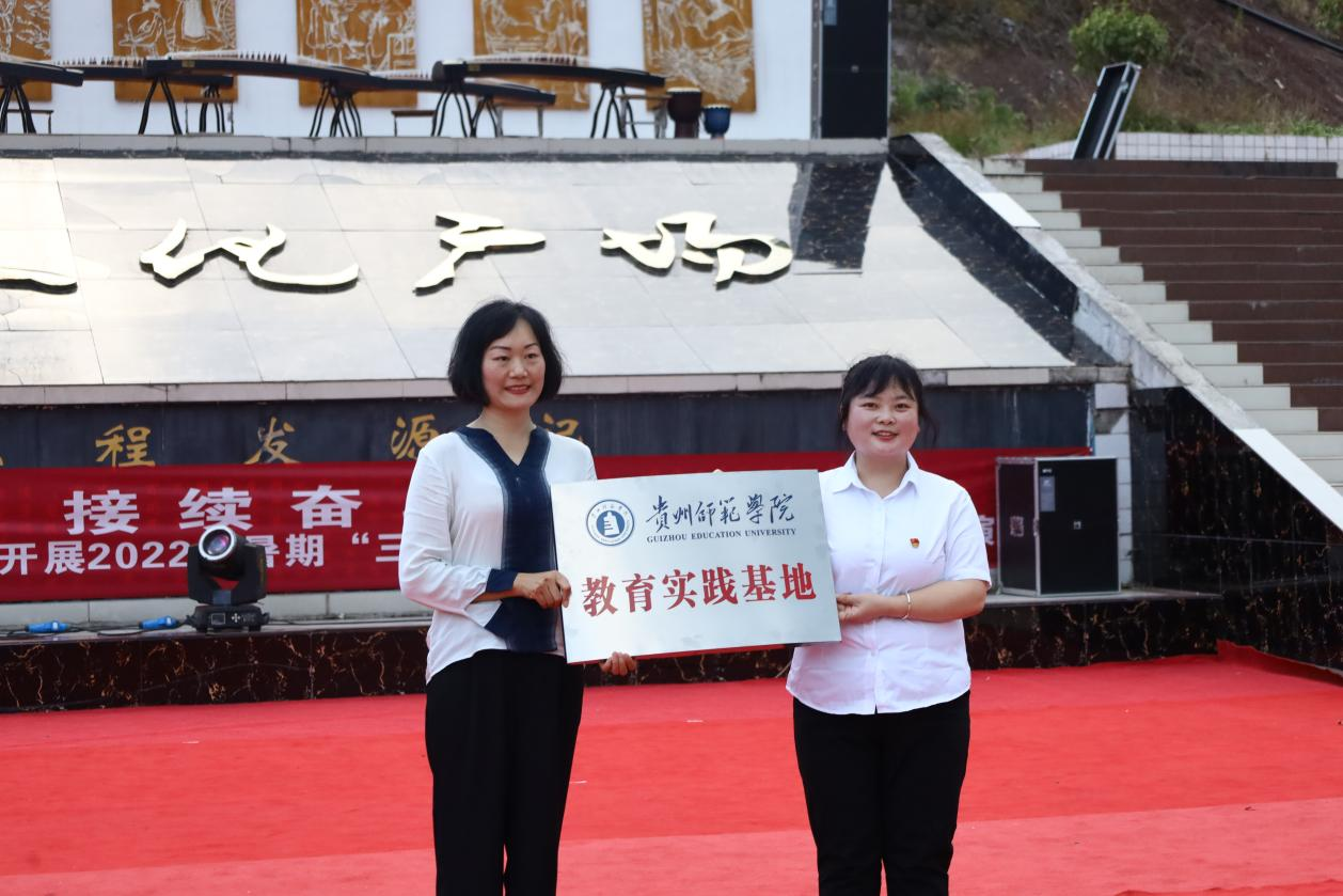 为建立长期结对帮扶及合作模式,在正式演出前,付巧为二郎镇中心小学“williamhill英国官网教育实践基地”授牌,拟将该校作为公司艺术类专业师范生实习实践教学基地,定期选派优秀实习生参与二郎镇中心小学艺术公司产品工作,让“双减”政策落实落地,助推形成“以美育人、以美化人、以美培元”的人才培养格局。