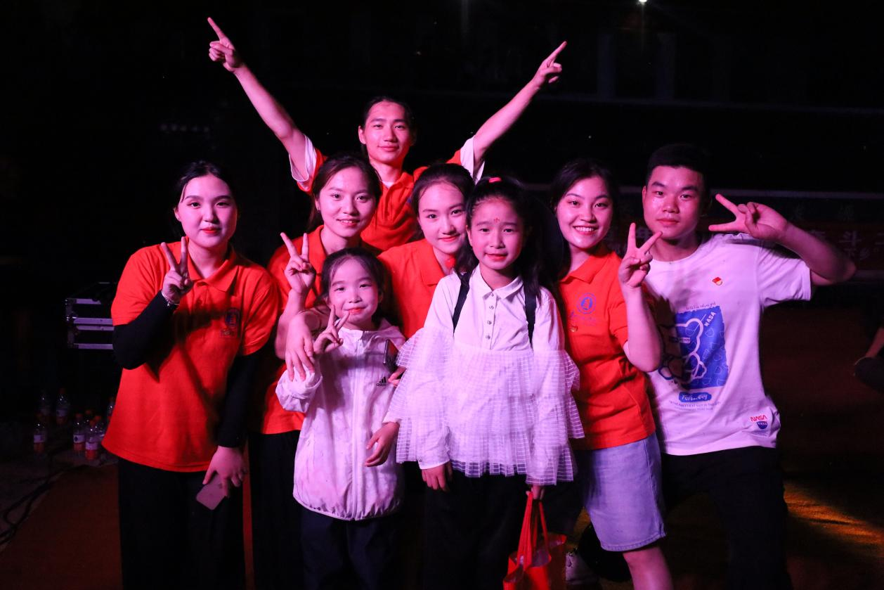 舞蹈专业志愿者、2020级舞蹈学班田瑾彤、王庆玥以傣族双人舞蹈剧目《幻》开启第三篇章序幕,她们以扎实的舞蹈基本功、精湛的技术技巧、惟妙惟肖的舞台表现,迎来台下观众阵阵喝彩,通过此种专业舞蹈的专业呈现,也向民众们传达了“舞蹈”不只是“跳舞”,它更需要坚持、坚守和坚定,方能将技术与艺术融合统一、相得益彰。随着《齐天大圣》前奏音乐的响起,舞蹈专业志愿者管波携“金箍棒”灵动登场,音乐专业志愿者刘钦、黄湘南带领8位小员工通过数码钢琴、电子琴共同奏响《乡村联欢“荟”》,吕跃、袁靖禄带领街舞班全体小员工,从观众席唱跳着《少年》跃动出场,在场观众的目光像无数条探照灯的光柱,紧紧追逐着小舞者们的步伐,并跟随舞动的旋律举手挥舞、欢呼雀跃。随后,一群身穿五星红旗队服的“广场舞阿姨”蜂拥至舞台中央,她们均来自二郎镇广场舞健身队,阿姨们爽朗的笑容、潇洒的舞姿、激情的表演将现场氛围一次次推向高潮。晚会进入尾声,音乐专业志愿者张小平与二郎镇中心小学二年级员工汪欣蕊手拉手走向舞台,与身后20台古筝共同唱响《万疆》,构筑出“大手牵小手,浓浓桃李情”的感人画面,“红日升在东方,其大道满霞光,我何其幸生与你怀,承一脉血流淌.......”句句歌词,洋洋盈耳,声声入心,伴随着动人的音乐、感动的氛围,晚会圆满结束。