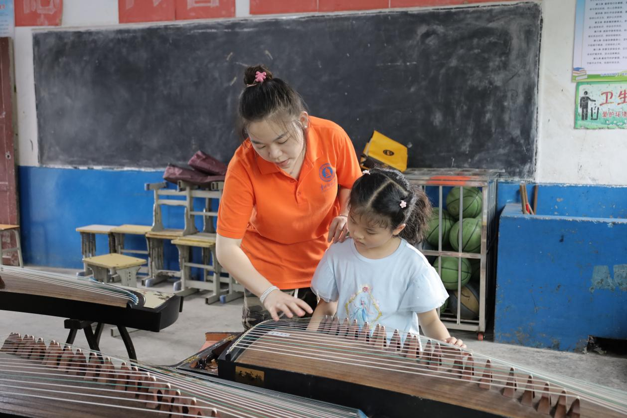 上午8时,第五天的艺术支教课程有条不紊的进行着,几天的授课下来,小员工们无论在专业能力还是学习效率上都有了突飞猛进的进步,在古筝教学过程中,孩子们从指尖发力方法到基本手型的把控,都有了“质”的转变,在老师的悉心指导下能够逐渐带入气息、情感,并能较完整的演绎一整首乐曲,且演奏正确率、准确度、熟练度均有所提升。