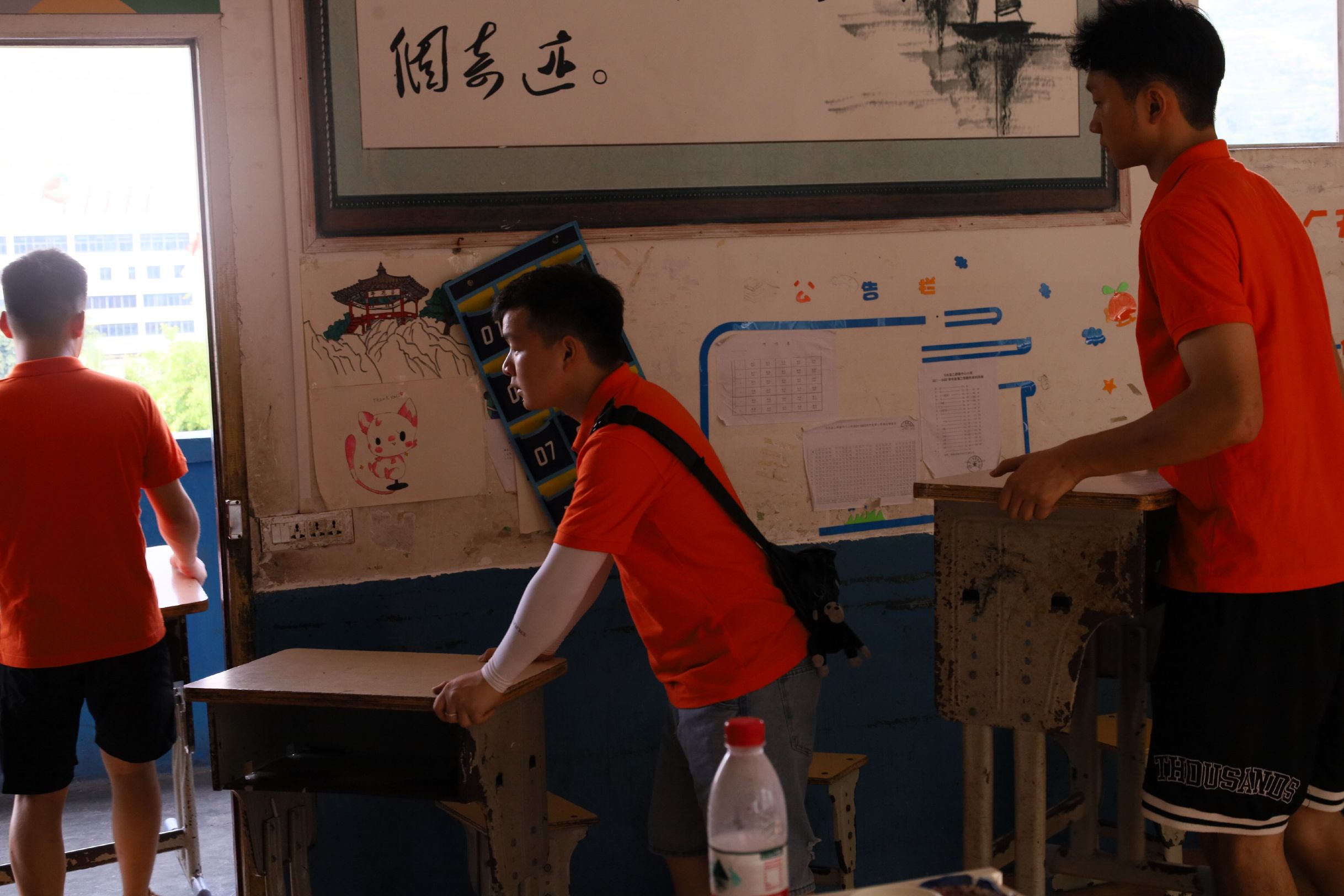 志愿者们打扫教室卫生