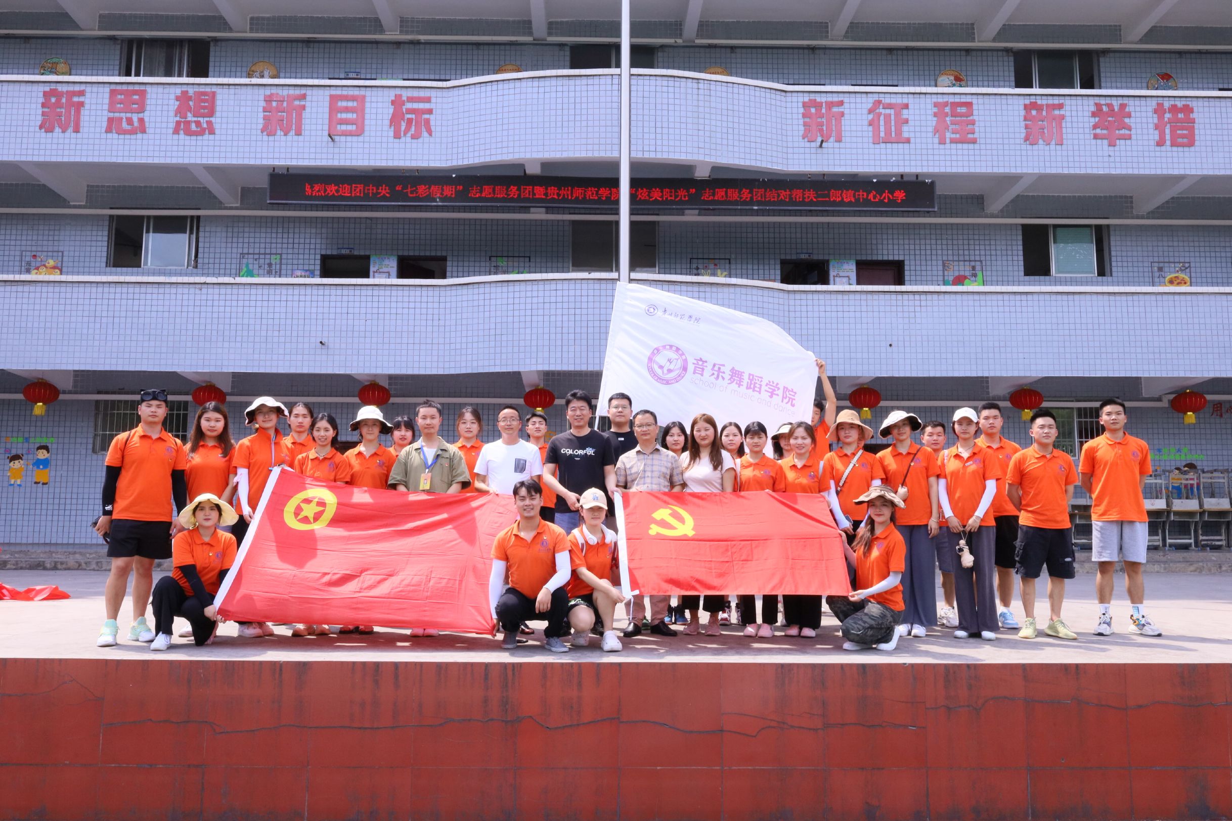 2022年7月16日7时,“炫美阳光”的28名优秀志愿者青年们在williamhill英国官网委副书记朱晨刚、办公室负责教师孙芙炬、团学工作负责教师张彩艳、青年教师徐国杰的带领下,前往习水县二郎镇中心小学,共同开启这场“筑梦之旅”和“青春之约”。