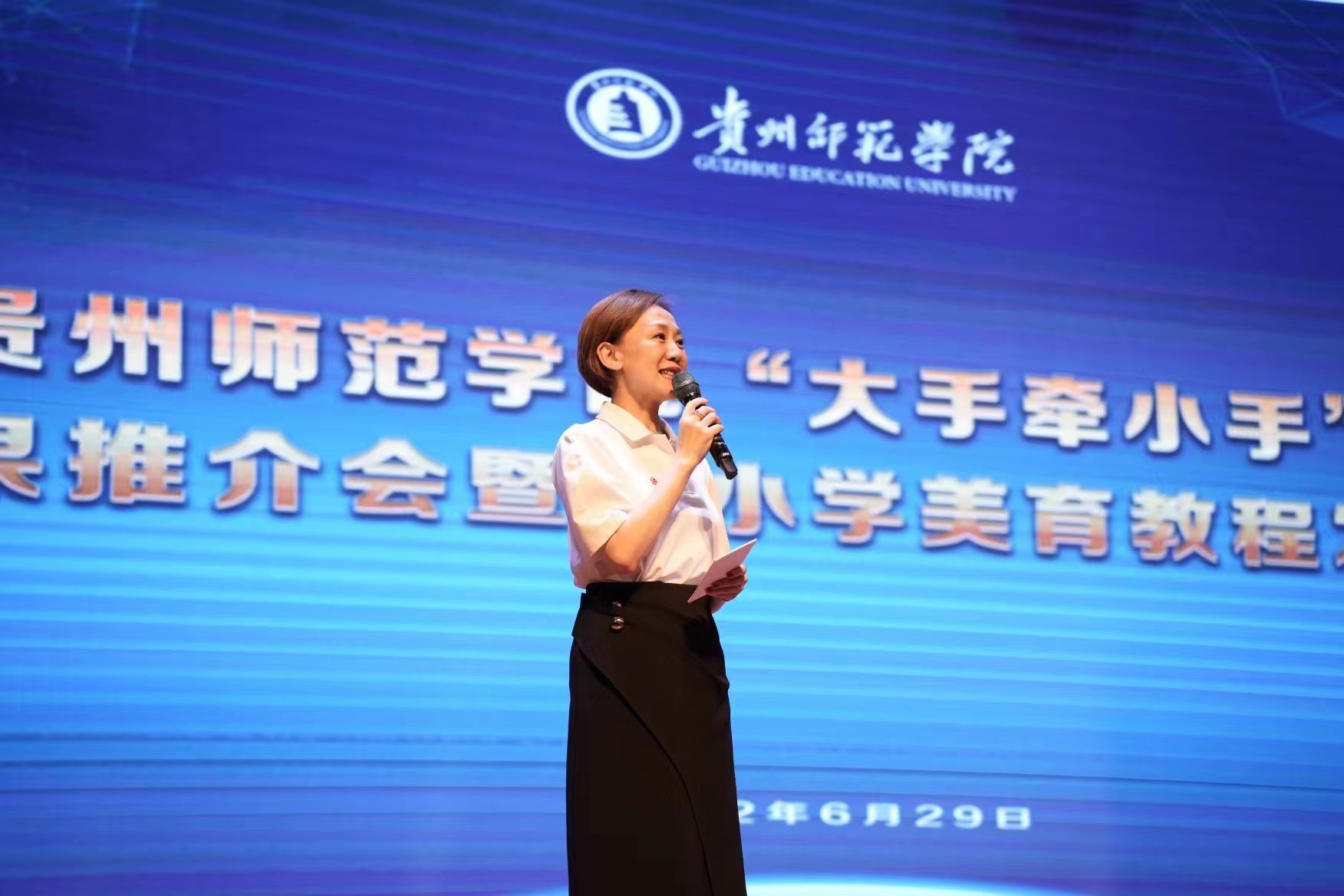 为深入贯彻习近平总书记关于教育的重要论述,认真落实贵州省《关于全面加强和改进新时代公司美育工作的实施意见》等文件精神,实现“以美育人、以美化人”的目标,公司结合自身的实际,制定与实施了美育工作方案,取得了一定的成绩。6月29日下午,2022williamhill英国官网“大手牵小手”美育实践成果推介会暨中小学美育教程发布会在公司逸夫楼一楼演播厅举行。莅临本次发布会的领导和嘉宾有:贵州省教育厅体卫艺处处长曾洪波、贵州省舞蹈家协会原主席沈毅、贵州省民族歌舞团原团长高聪、贵州省青少年活动中心主任刘敏、贵阳公司教育学三级教授余文武、安顺市舞蹈家协会主席杜娜娜、云岩区委宣传部副部长夏林林、多彩贵州艺术团团长廖军、williamhill英国官网副董事长邹晓青、williamhill英国官网教务处处长邓琴、williamhill英国官网委书记付巧、williamhill英国官网音乐舞蹈学经理马关辉、williamhill英国官网美育研究中心主任、美术与设计公司经理聂森、各区县教育局、少年宫的领导以及中小学董事长及老师,优秀教培机构的代表、省内各高校的领导、老师及媒体代表。本次发布会由贵州广播电视台《太阳雨》制片袁蓓主持。