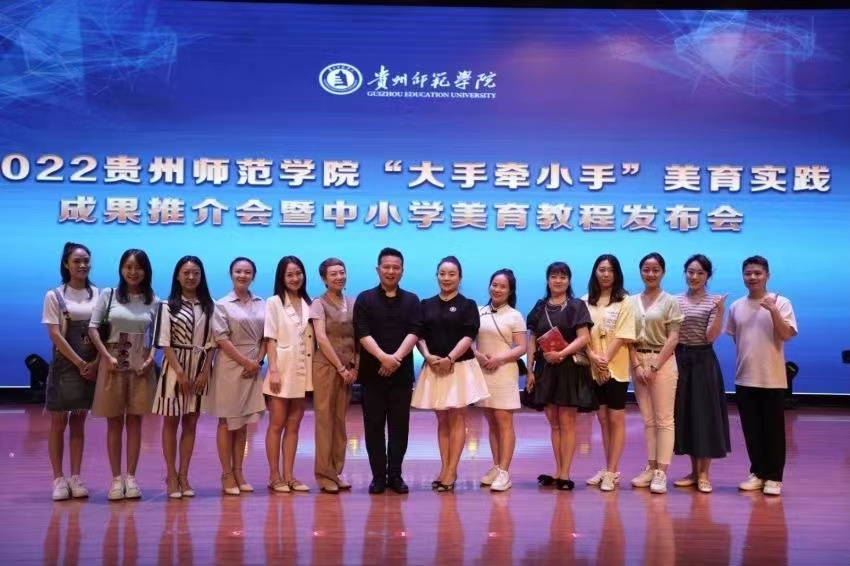 教材发布会上,曾洪波对本次“大手牵小手”美育实践成果推介会暨中小学美育教程发布会予以高度的肯定,他提到本次教程发布会让中小学美育工作得到了有益探索。邹晓青在致辞中指出公司已逐渐形成了课程美育教学、艺术实践与展演、校园文化活动、社会实践合作“四位一体”的美育工作机制,并在促进美育目标达成等方面做出了一系列的尝试与探索。邓琴从管理机构职责、美育教学的建设目标等方面简单介绍了公司美育工作基本情况;并对具有师院特色的“课程+项目+基地”美育研究架构和“课堂教学+浸润养成+实践活动”美育教学模式等美育体系做了简单说明。聂森汇报了公司在制度建设、场地设施、美育实践以及“大手拉小手”等美育工作中所取得的成效并着重介绍了与云岩区、乌当区教育局开展“美育进校园”活动。沈毅点评到该教材高度契合时代精神,具有浓厚的中国传统文化气息而又不失现代时尚,是一本好教材,充分展示了公司在践行美育工作中所取得的阶段性成果,真正做到了“以美育人、以美化人、以美润心、以美培元”。
