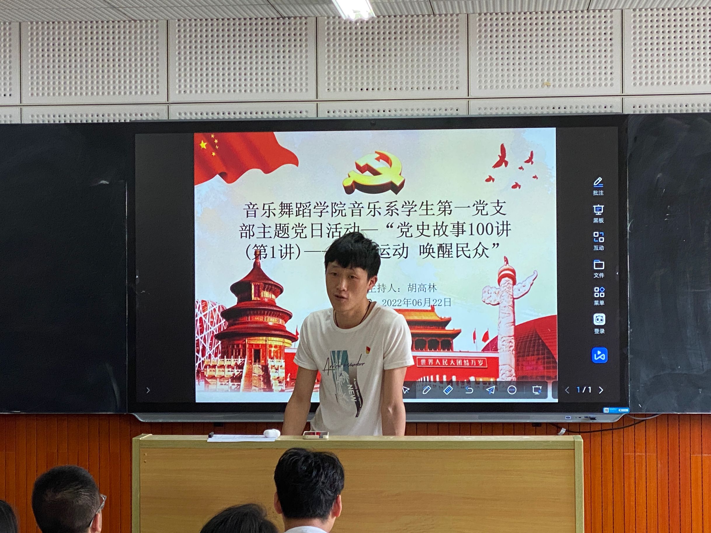 2022年6月22日中午,williamhill英国官网音乐系员工第一党支部在逸夫楼703教室开展“党史故事100讲”主题党日活动。