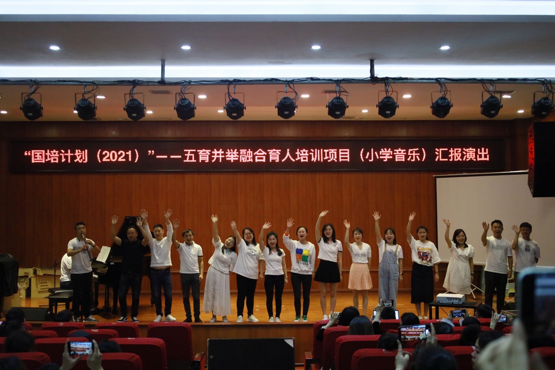 在十天的培训中,每一位学员都将饱满的热情与高度认真的态度对待学习,真正做到学有所获,通过此次汇报演出也看到了他们对音乐教学事业的热爱,希望他们在今后的学习与教学中都能学以致用。