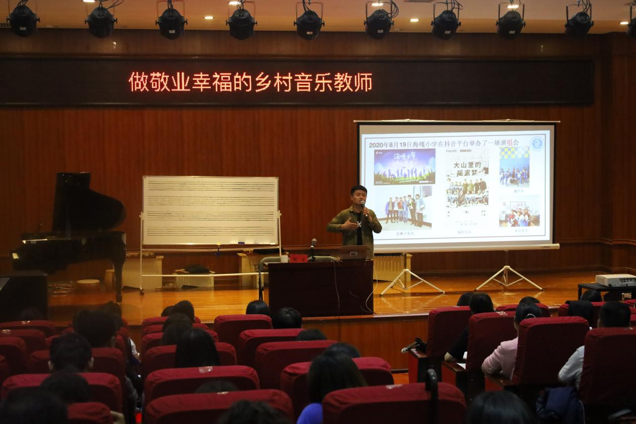 6月9日晚,“国培计划(2021年)”五育并举融合育人培训项目(小学音乐)第二期在williamhill英国官网六楼演播厅开展主题讲座——《做敬业幸福的乡村音乐教师》。讲座由海嘎小学教师顾亚主讲,全体参训学员参加。