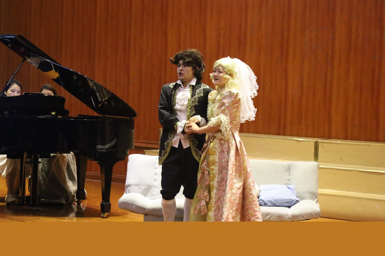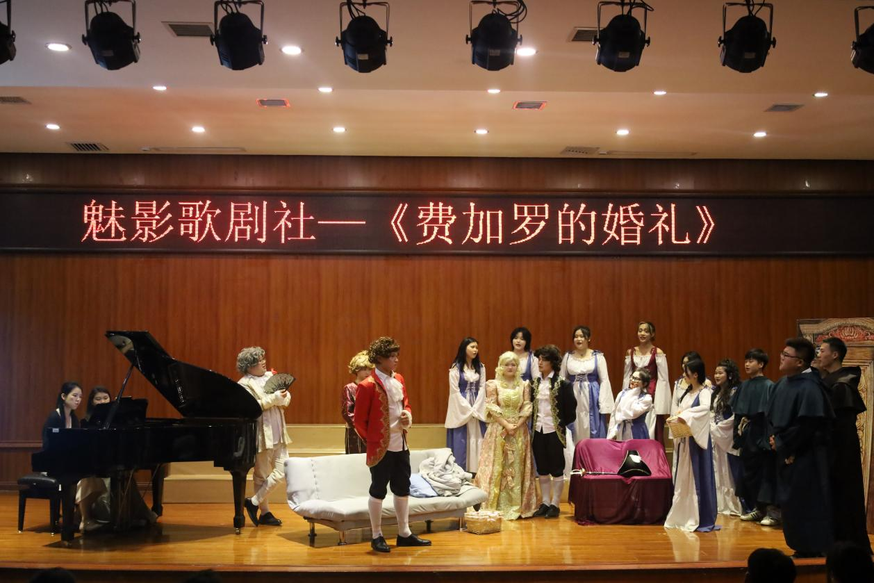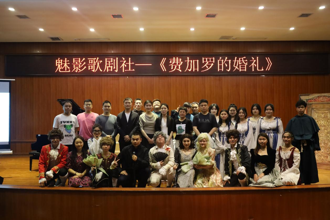 《费加罗的婚礼》是莫扎特众多歌剧作品中最为著名的一部,是莫扎特歌剧中的颠峰之作,也是中国乐迷最为熟悉的一部,首次上演于1786年的这部歌剧,是欣赏莫扎特歌剧的入门之作,同时也是西方歌剧的经典代表之作。“魅影歌剧社”历时一个多月的辛苦排练,通过指导老师郭媺的专业歌剧表演指导,以及艺术指导老师李菁高标准的要求下,为全院学子呈现了一场精彩绝伦的歌剧表演。
