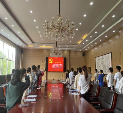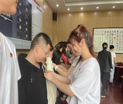 随后,支部老党员为新党员佩戴党徽,郭媺带领新发展党员一起宣读入党誓词。最后,舒然总结发言,强调各位新党员要在新的征程上,踏实认真的走好每一步,将自身的发展与党和国家的命运紧密相连,在青年员工群体中充分发挥先锋模范带头作用,用奋斗书写最美丽的青春誓言!