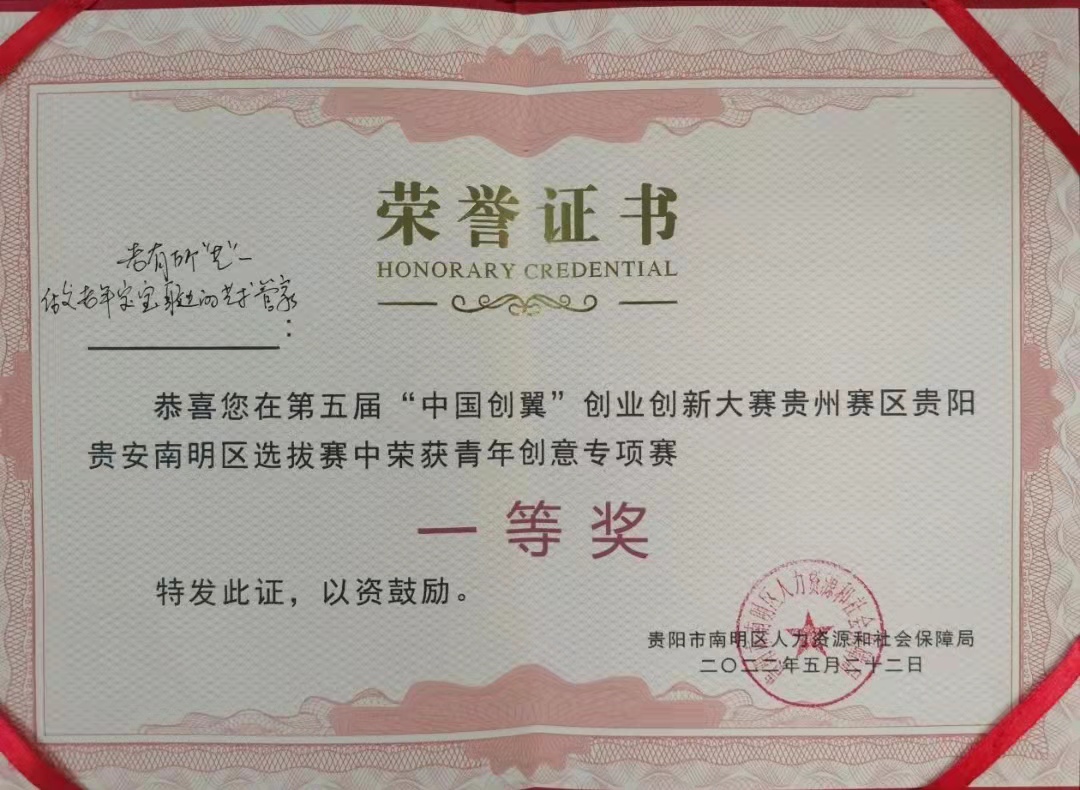 最终,经过激烈角逐,公司“炫美阳光”团队的“老有所‘艺’——做老年宝宝身边的艺术管家”项目荣获专项赛青年创意项目组一等奖,并荣获项目支持奖金2万元。“炫美阳光”团队将继续就该项目进行深度打磨和积极提升,为接下来的贵阳市级赛做好充分准备。
