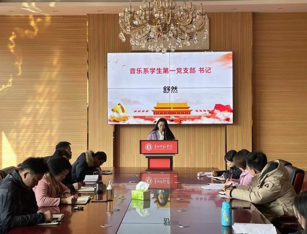 会上,按照要求,舞蹈系员工党支部书记李金容、音乐系员工第二党支部书记刘书源、音乐系员工第一党支部书记舒然、教师党支部书记谭娇艳依次进行现场述职汇报。各党支部书记围绕深入开展落实党史学习教育和“牢记殷切嘱托、忠诚干净担当、喜迎建党百年”专题教育工作情况,加强党的思想建设、组织建设、作风建设、纪律建设、标准化规范化建设等方面,结合党支部实际,汇报了各自一年来履职尽责情况、党支部特色工作、党支部建设存在的问题及下一步工作思路、改进措施等。