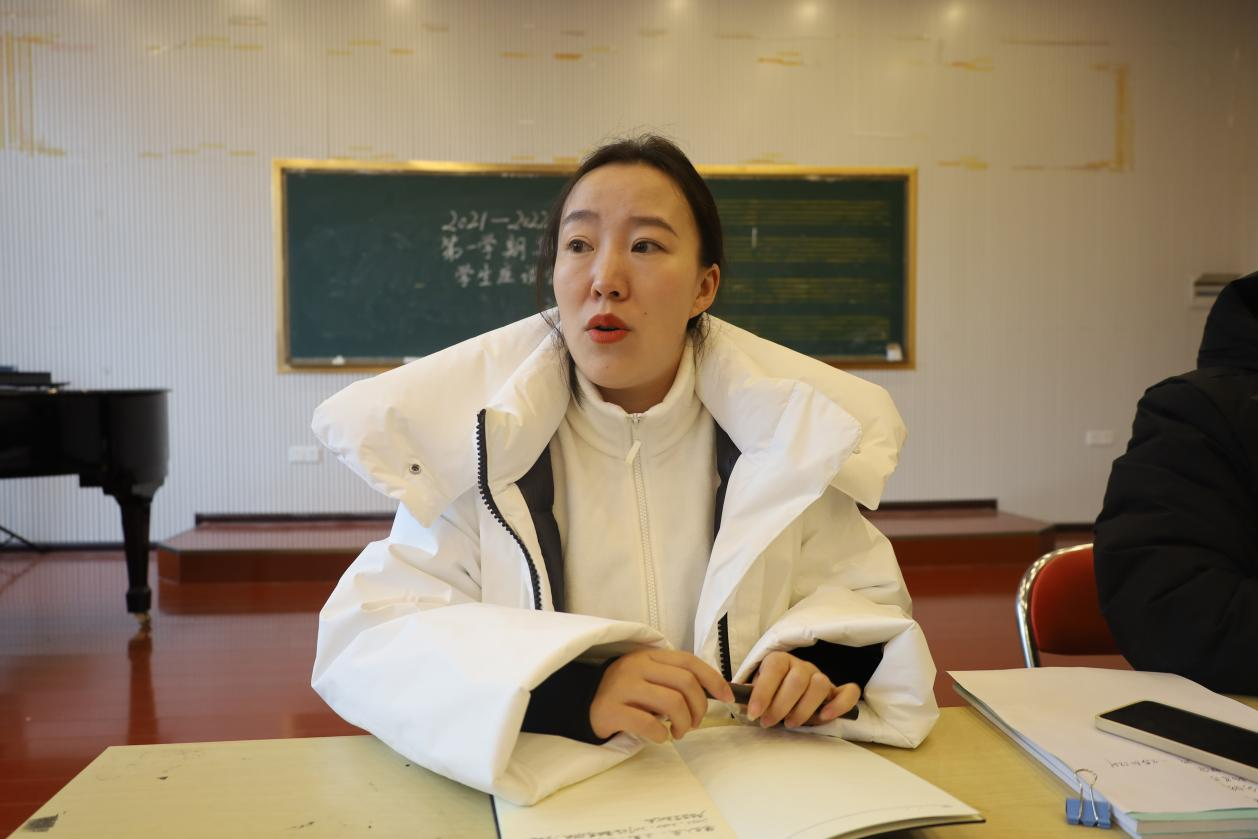 为倾听同学们的心声,全面了解公司员工在学习、生活中遇到的困难,营造良好的育人和学习环境,12月16日中午,williamhill英国官网在四楼合唱排练厅组织召开员工期末座谈会。出席会议的有副经理王晓,声乐教研室主任王铎、教学秘书张蕊。参加会议的有2019级、2020级及2021级各班的班长、学习委员一名声乐方向员工代表。会议由张蕊主持。