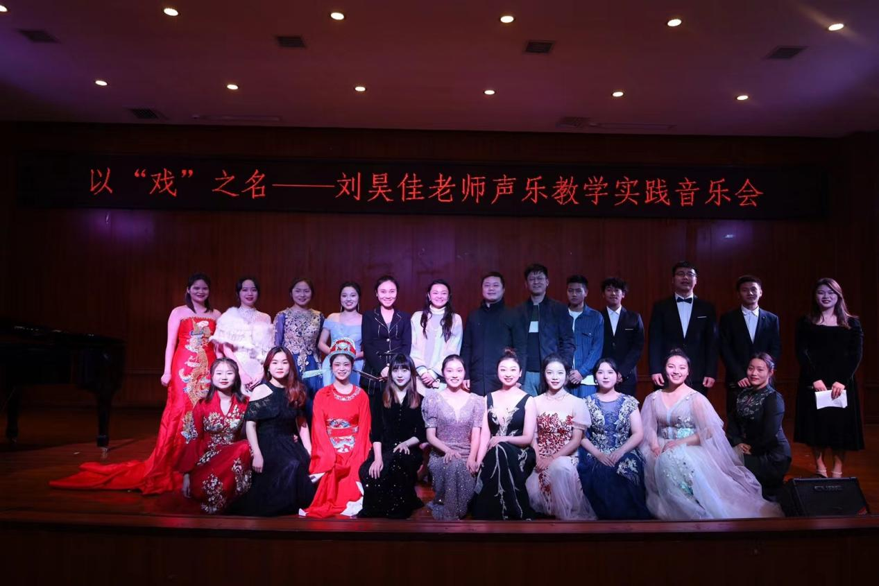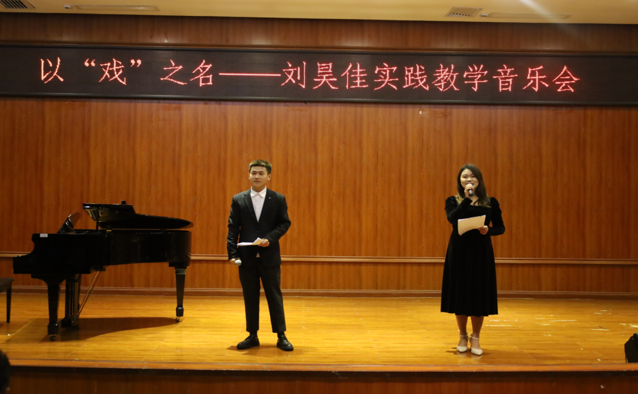 为深入探索高师音乐学专业课程思政实施策略,12月14日晚,刘昊佳老师指导、组织了以“戏”之名——刘昊佳老师声乐教学实践音乐会,经理马关辉、副经理王晓和孙芙炬、王铎、谭娇艳、刘昊佳等老师以及各班员工在公司六楼表演厅观看了此次音乐会。音乐会由田玉婷、韩宇航主持,邹力征老师担任音乐会伴奏。