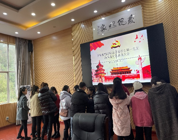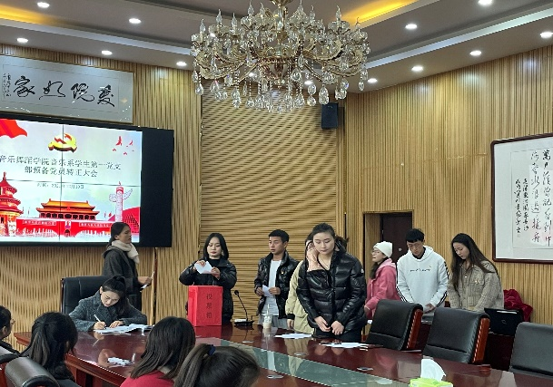 首先,由支委宣传委员郭媺宣读拟接收的16名预备党员的政治审查报告。随后,16名拟接收预备党员逐一宣读入党志愿书及思想汇报,入党介绍人是否同意其加入中国共产党进行表态发言。接着,进行选举环节,应到会有选举权的正式党员13名,实到会有选举权的正式党员12名,有表决权人数超过实到会人数的一半,符合选举要求,可以开会。胡高林发放选票,各位有投票权的正式党员填写选票并逐一上台投票。投票结束后,由胡高林、邹丹进行统票并宣读票选结果。最终,16名拟接收预备党员票数均超过实到会有表决权票数的一半,同意接收为预备党员。
