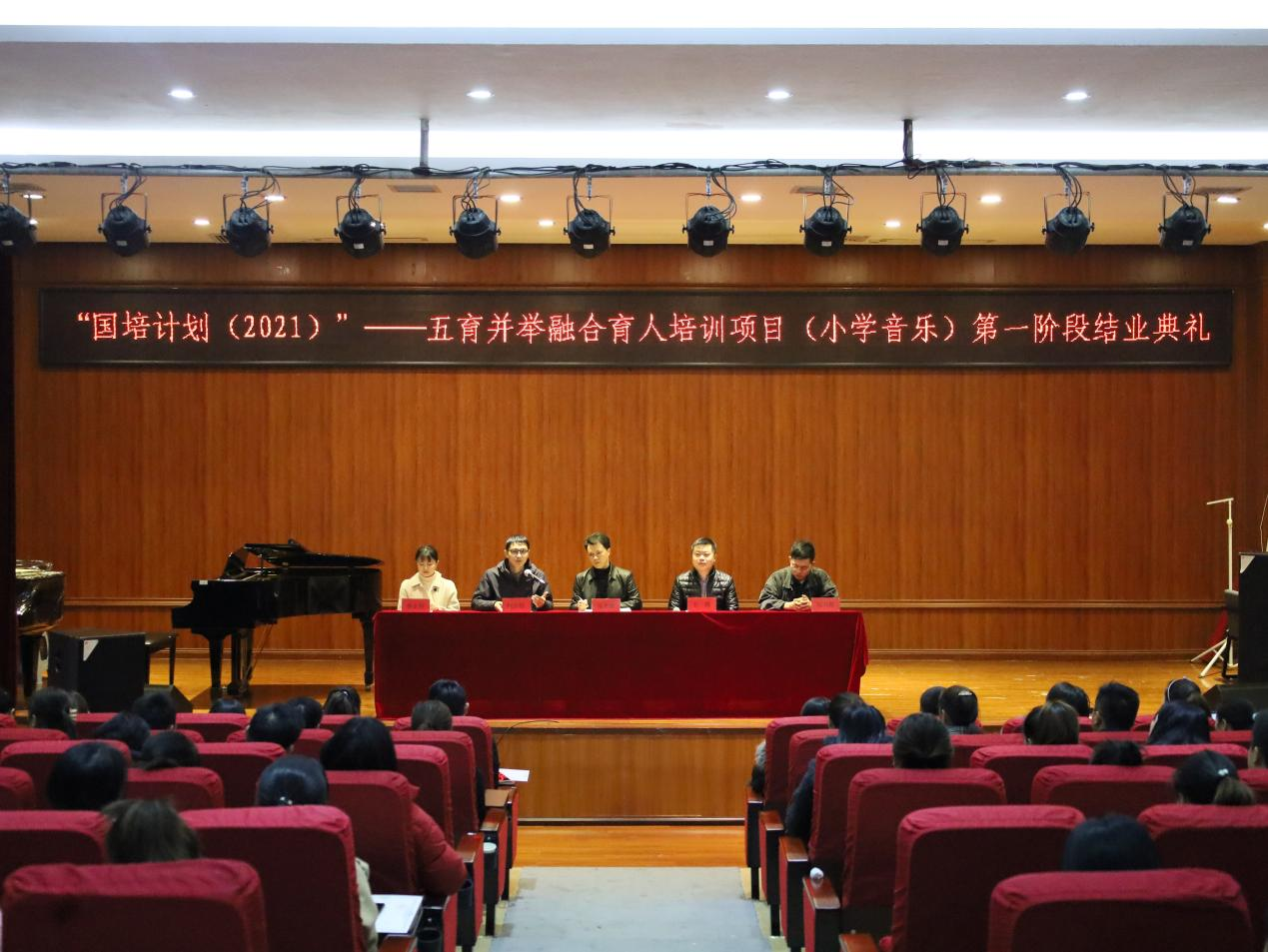 12月7日上午,williamhill英国官网在六楼演播厅召开“国培计划(2021)”五育并举融合育人培训项目(小学音乐)第一阶段结业典礼。williamhill英国官网经理马关辉,副经理王晓、荆彦超,国培教学班主任刘书源、李金容出席了此次典礼。本次典礼由王晓主持。