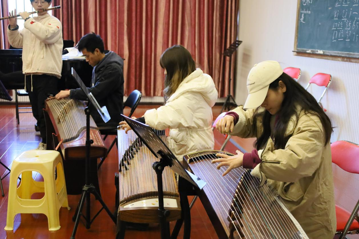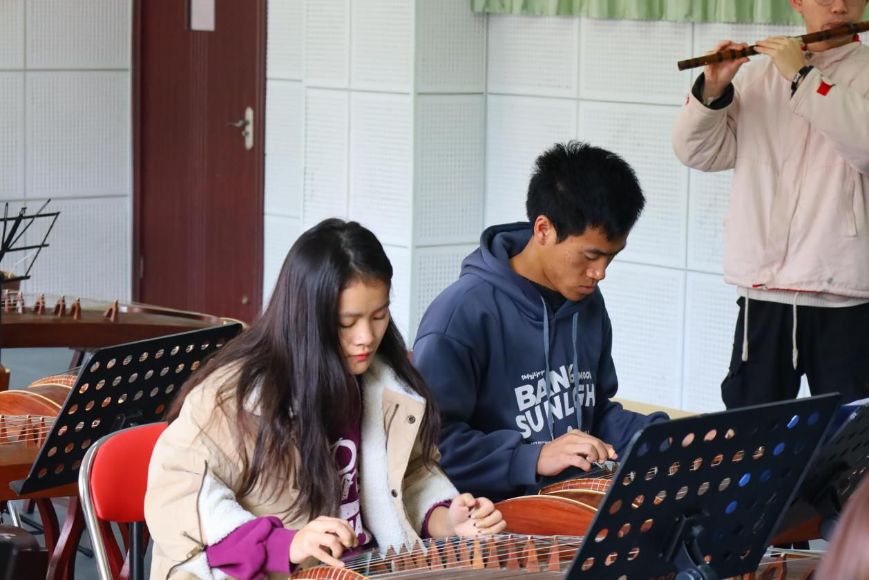 各个节目在老师辛勤的排练下逐渐成形。器乐教研室老师陈玉莲指导的古筝合奏,琴音婉转低沉,回响在整个教学楼,充分展现了中国拨弦乐器的大气;声乐教研室老师王纪指导的《歌伴舞》将音乐与舞蹈融合,伴随《歌伴舞》音乐的响起,我们都是追梦人……同学们更深的意识到应勇敢去追寻自己的梦想;理论教研室老师舒然、谭娇艳指导的音乐剧《江姐》,以舞台剧方式,提高了同学们对音乐艺术的表达能力。