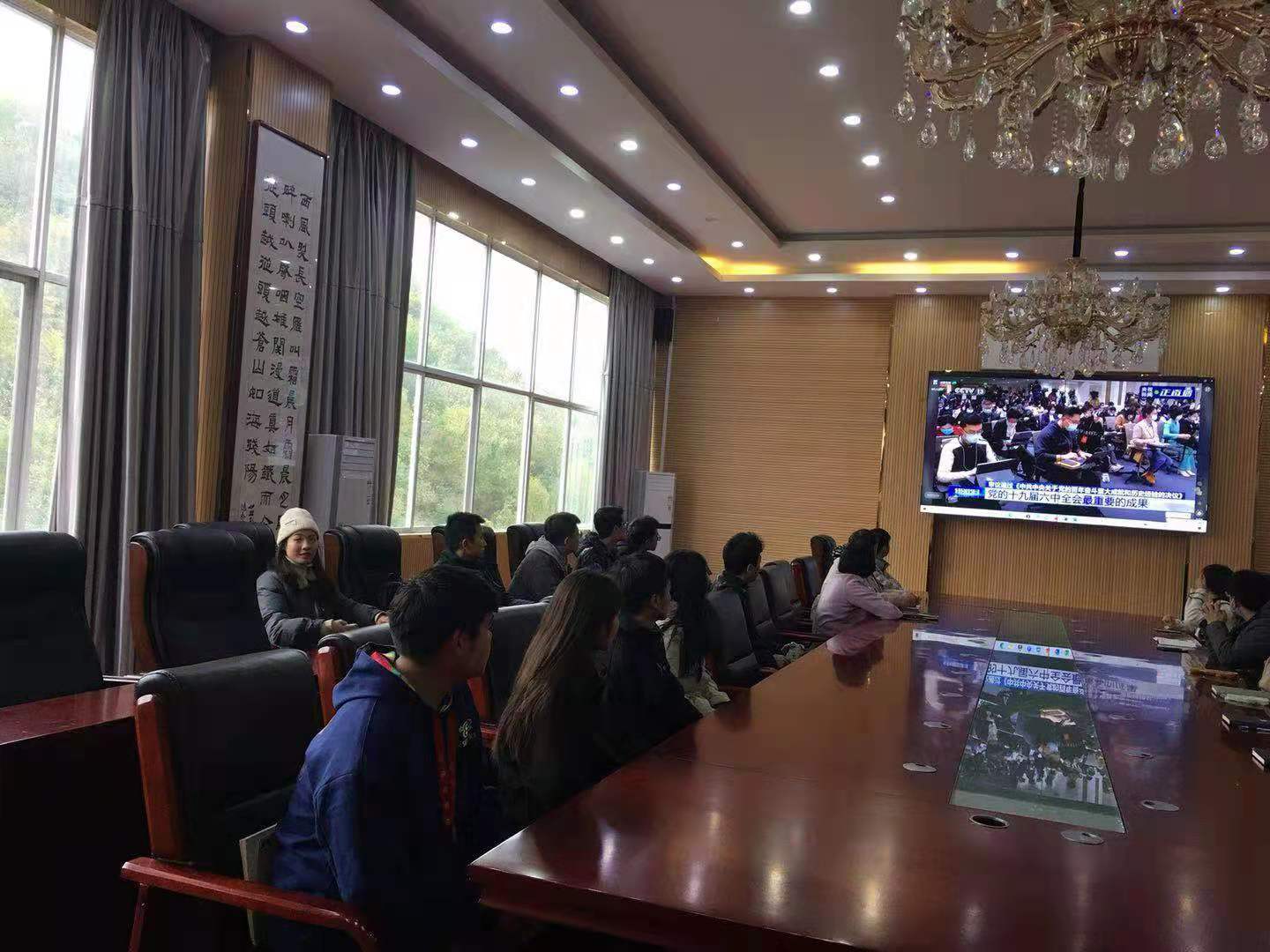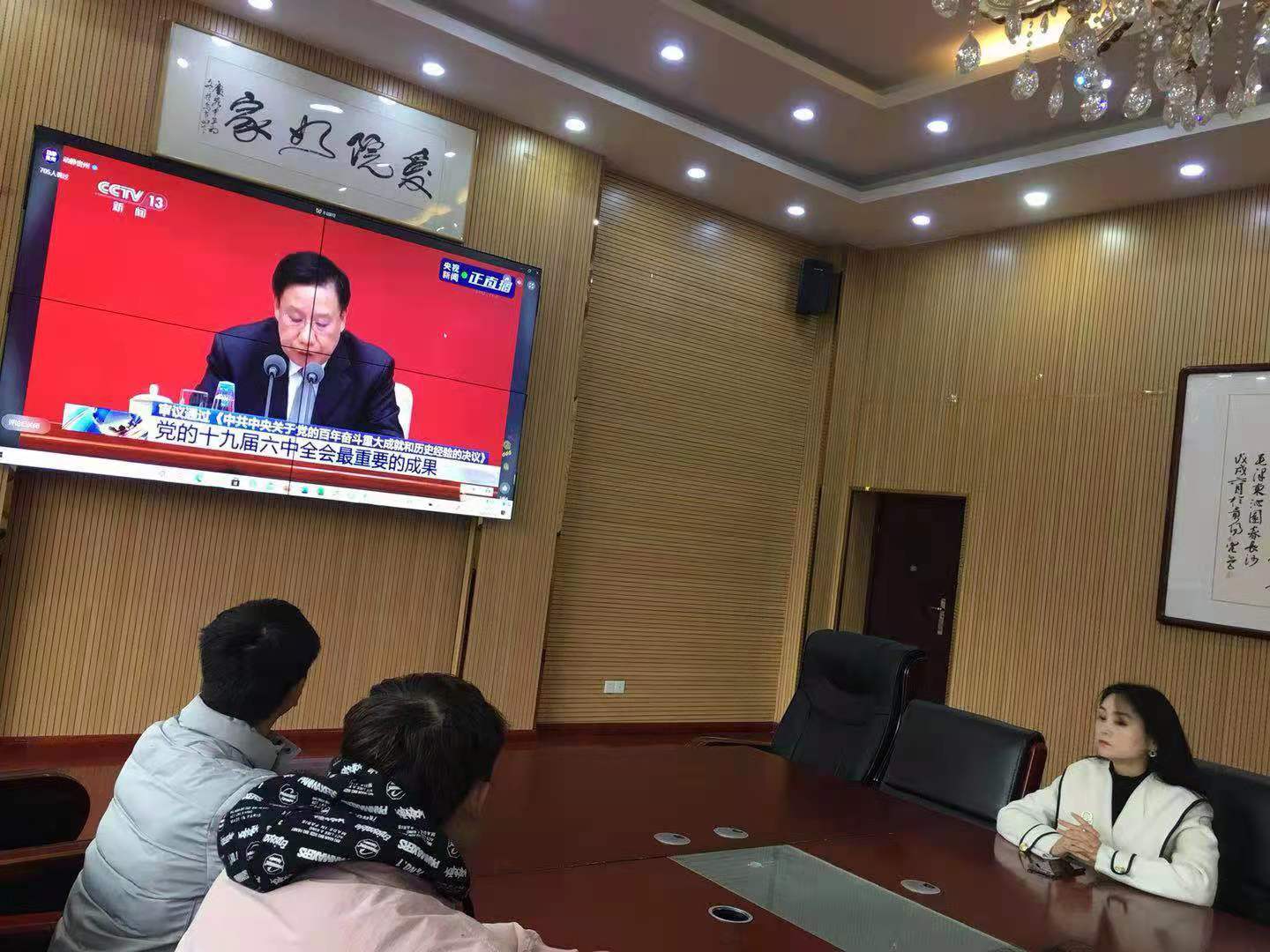 2021年11月12日早,williamhill英国官网团委组织优秀青年在六楼会议室观看党的十九届六中全会中共中央新闻发布会。出席观看的有团委书记舒然、团学老师张彩艳及优秀青年学子。
