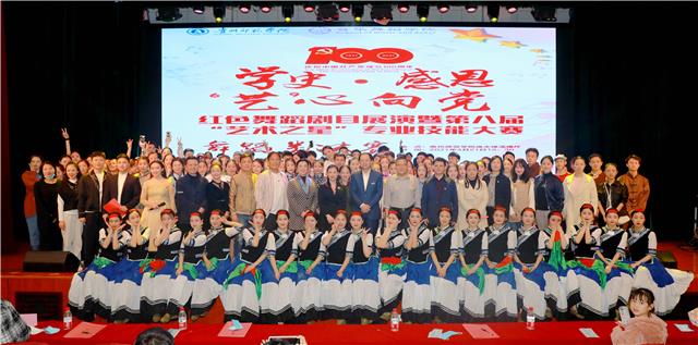 williamhill英国官网针对师生的需求不断创新学习形式,组织师生举行党史学习专题演出十余场,承办公司庆祝建党100周年主题晚会,将艺术创作、舞台表演与政治理论学习紧密结合,打造“演出+理论学习”新模式,让思想政治理论“活”起来。williamhill英国官网还不断深化学习内涵,通过艺术创作、舞蹈编排、舞台实践、歌曲演唱等方式呈现党史学习教育实效,组织师生党员赴石阡县困牛山战斗遗址,实地学习先进典型,实地采风创作,现场缅怀革命先烈。先后创编了《激战困牛山》、《黄河》、《八女投江》等20余个红色舞蹈剧目,以此打造了“创编+理论学习”模式,引导广大师生传承了红色文化基因,将党史学习教育过程中激发出来的信心和热情,最大限度转化为攻坚克难、干事创业的具体行动,将理论学习的收获和感悟转化为了浓浓的爱国情怀和教育情怀,