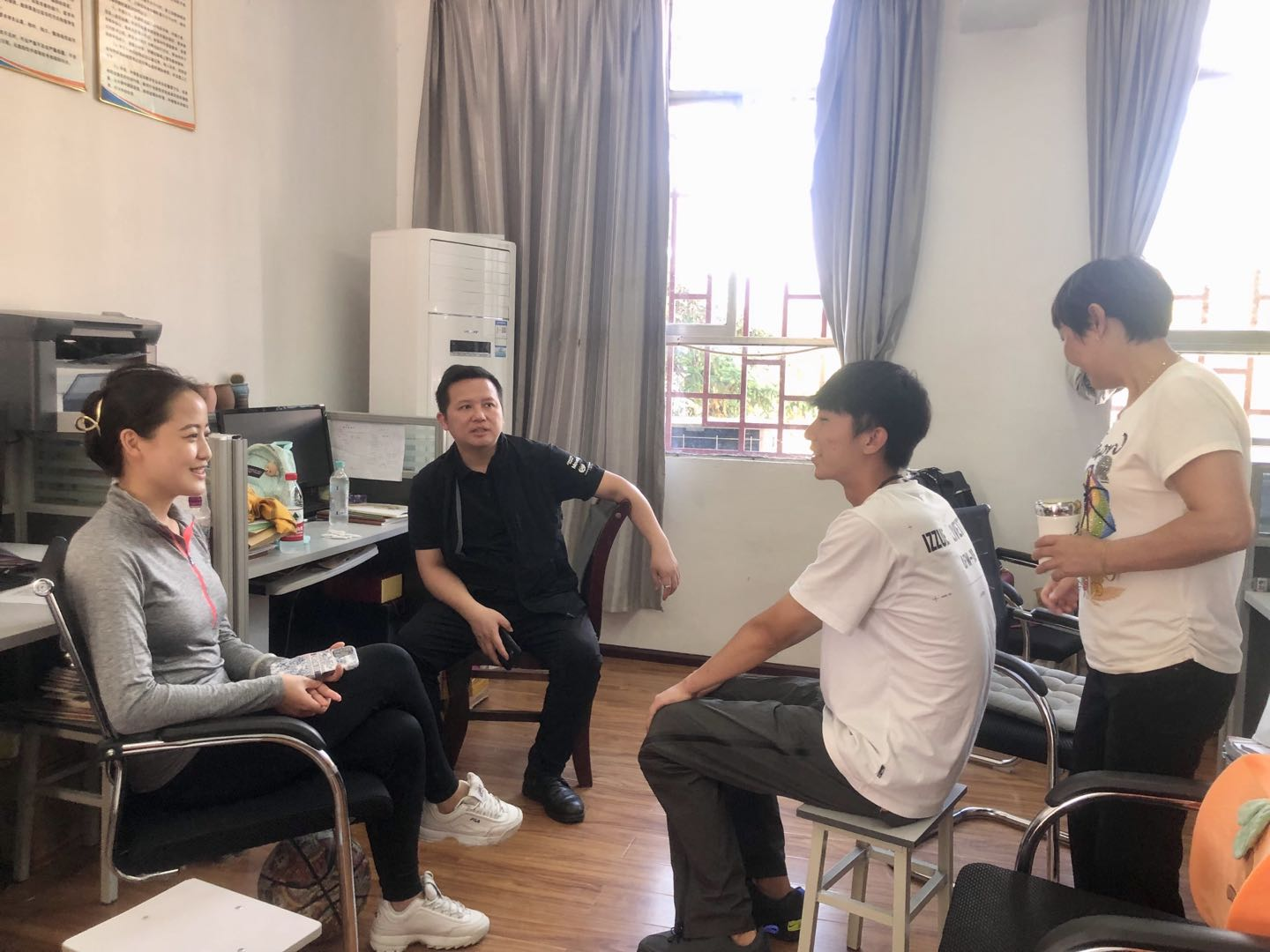 实习员工向走访小组老师反馈工作情况