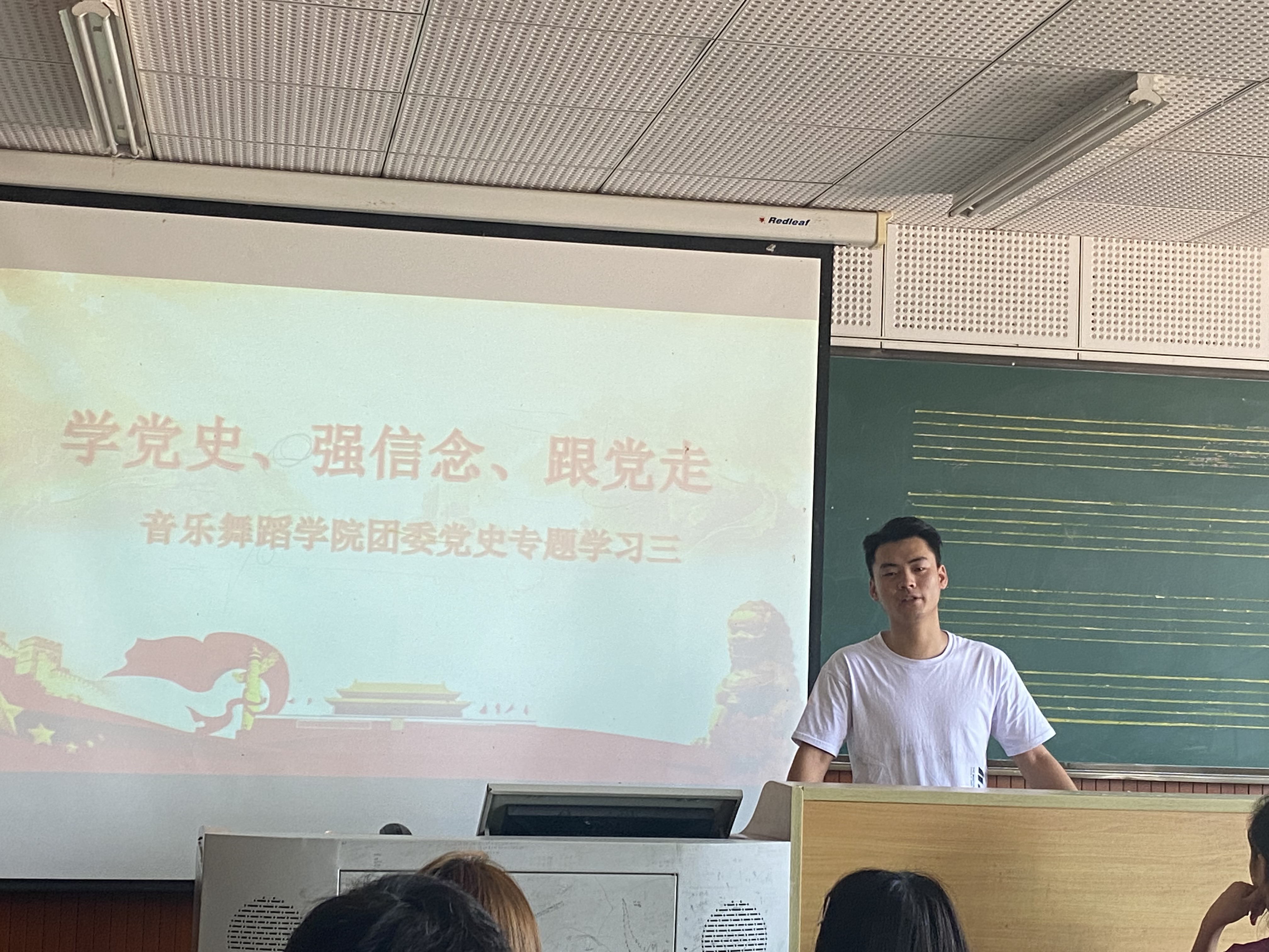 会议开始,由江远强带领大家进行对“学党史,强信念,跟党走”的学习,让我们深刻学习到党史就是要我们始终牢记党的理想信念,学习党史国史是对精神力量的传承。100年的党史,71年的新中国史是一部精神上的史诗。无数英雄先烈为了民族独立、人民解放抛头颅、洒热血的革命大无畏精神。如钱学森、邓稼先这样的科学家亦是这样。通过江远强讲述,团员们更加明确了自己的身份,身为青年一代肩上应担着的责任。
