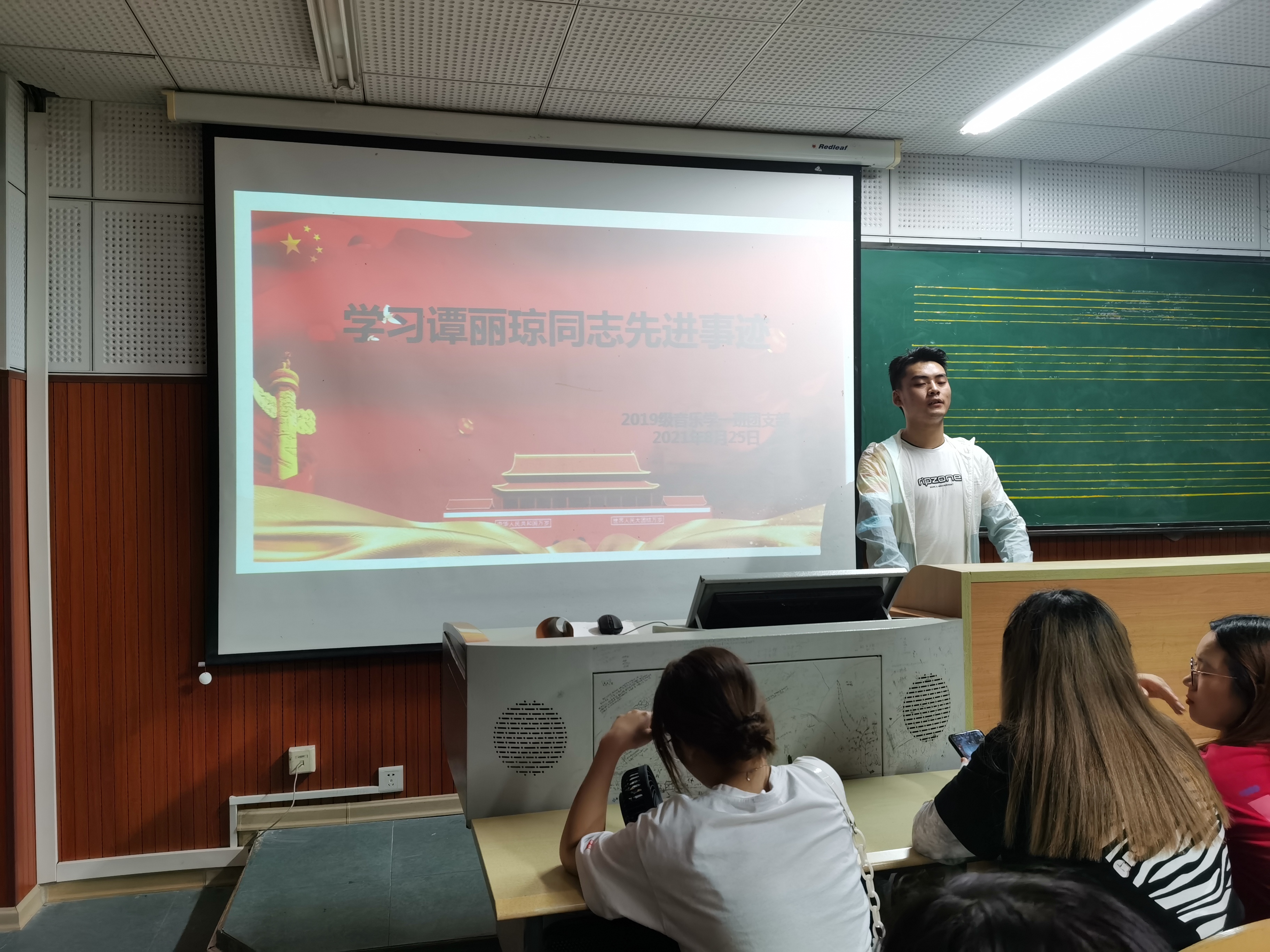 8月25日晚,2019级音乐学一班团支部在williamhill英国官网逸夫楼704教室开展学习谭丽琼同志的先进事迹学习会,参加本次学习的是2019级音乐学一班全体团学青年,此次学习会由副团支书江远强同学主持。