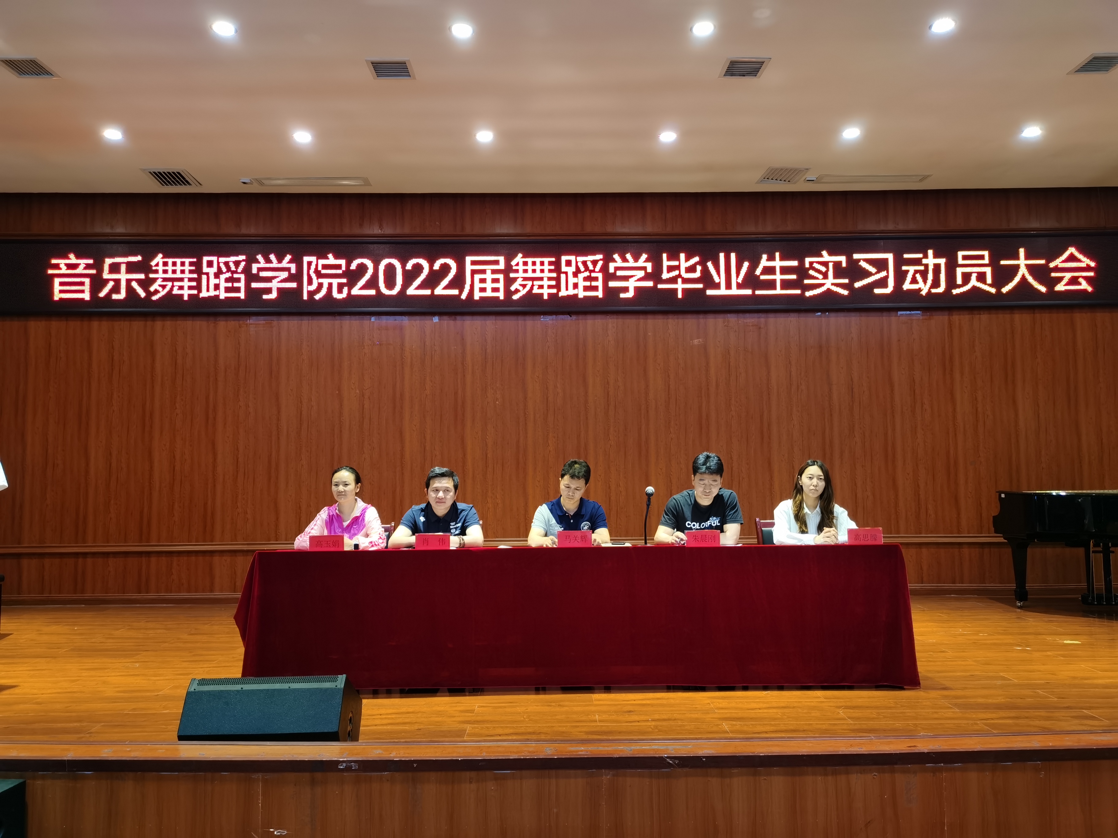 6月10日中午,williamhill英国官网于逸夫楼六楼音乐厅召开2022届舞蹈学毕业生实习动员大会,参会人员有williamhill英国官网经理马关辉、党委副书记朱晨刚、舞蹈系主任肖伟、副主任高玉娟、实习指导老师高思朦及2018级舞蹈学全体员工,本次会议由高玉娟主持。
