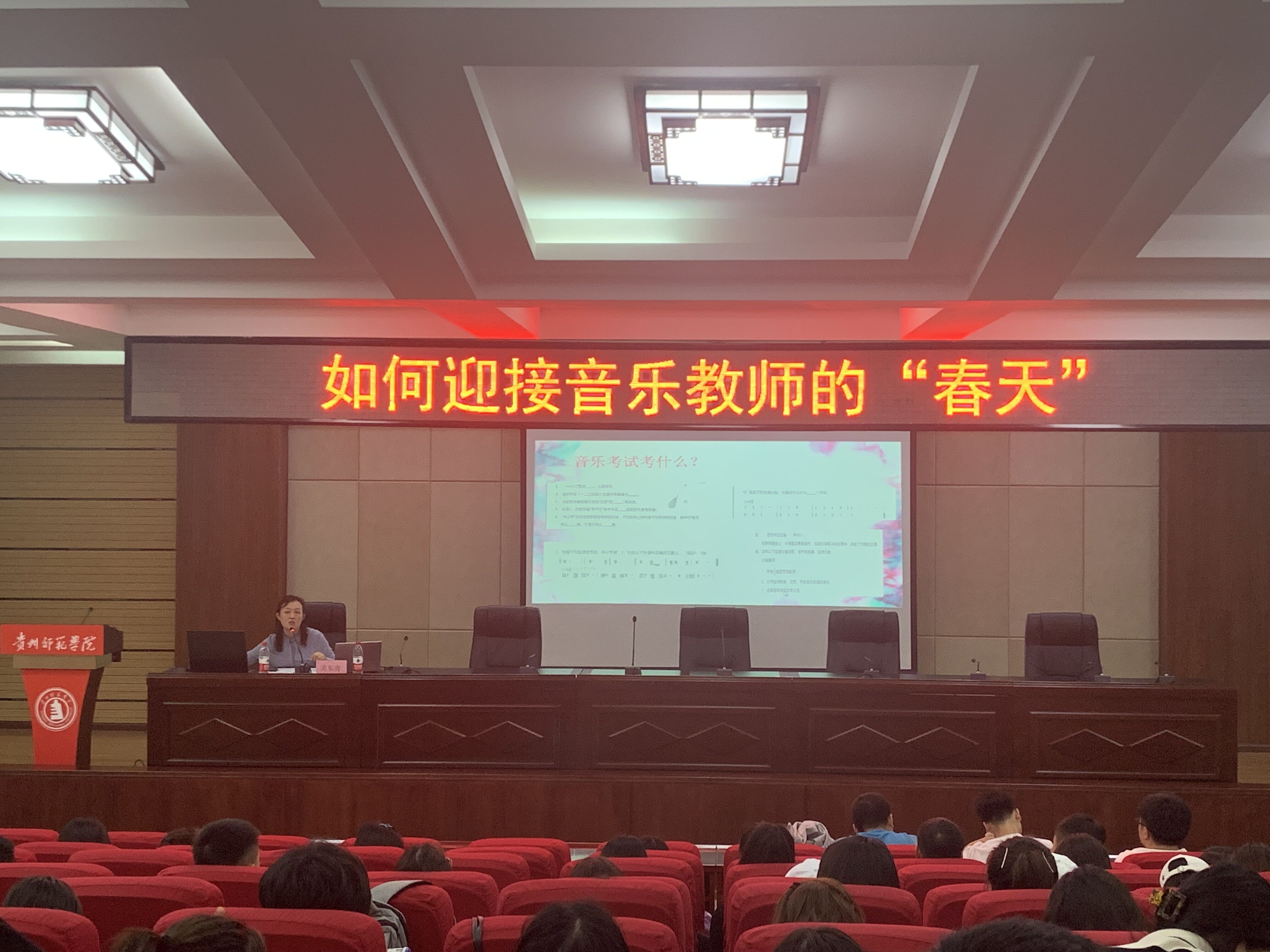 2021年5月27日下午,williamhill英国官网2022届音乐系员工在文韬院道德讲堂举行音乐师范生实习培训专题讲座——如何迎接音乐教师的“春天”。此次专题讲座由贵阳市第二十三中高级教师关冬青主讲。