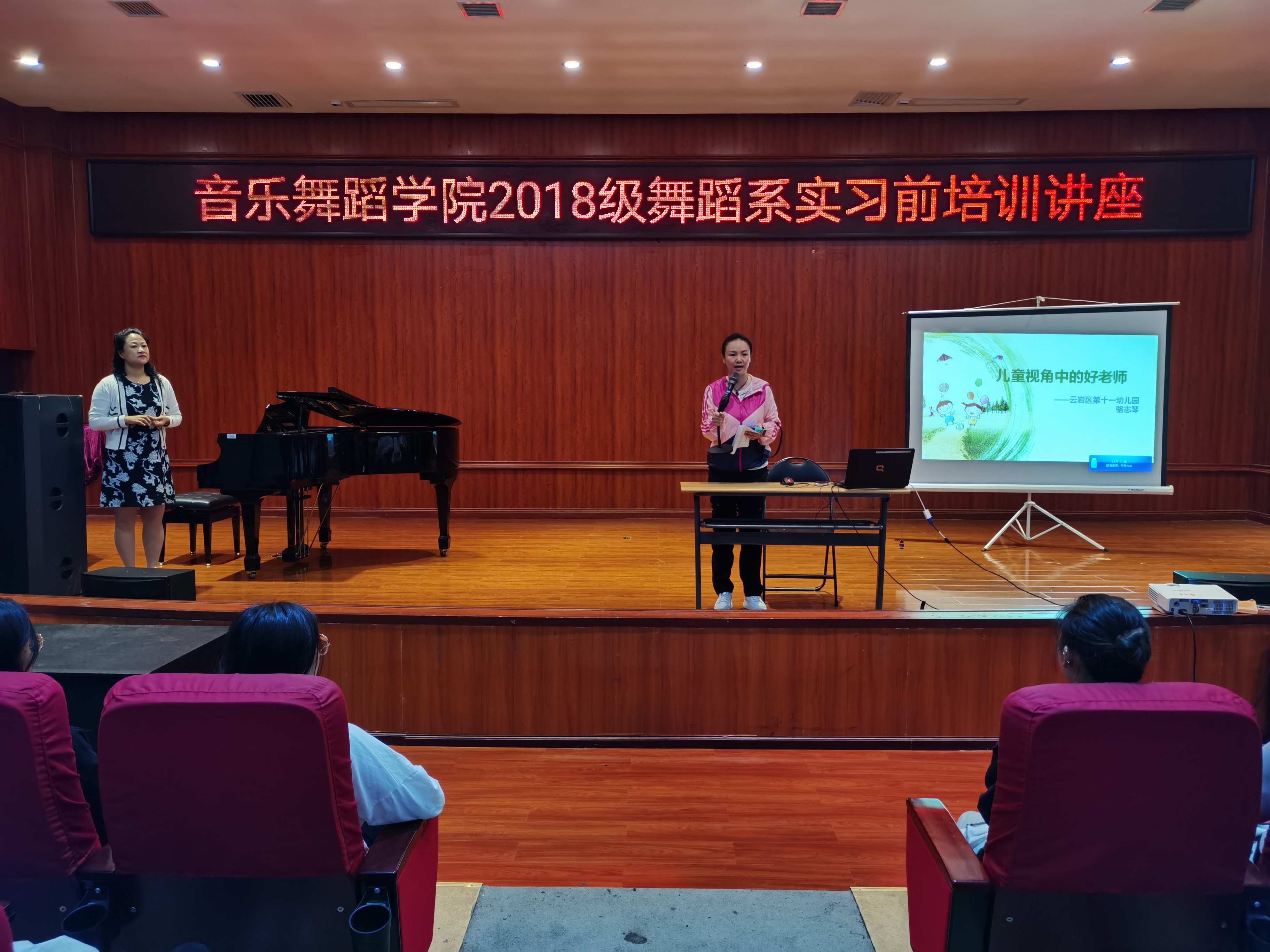 5月28日早上,为了让同学们对即将来临的实习有一个充足的准备,williamhill英国官网舞蹈系邀请了云岩区第十一幼儿园园长骆志琴于六楼音乐厅授讲2018级舞蹈系实习前培训讲座,参加讲座成员有舞蹈系副主任高玉娟老师及2018级舞蹈系全体员工。
