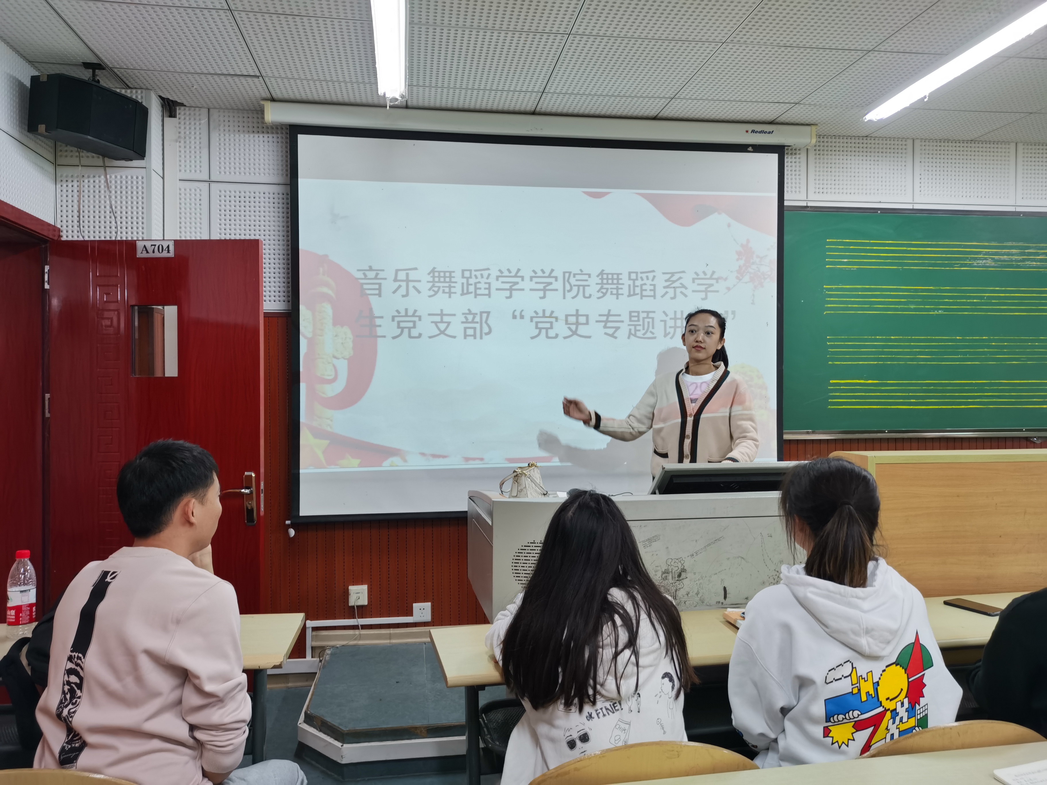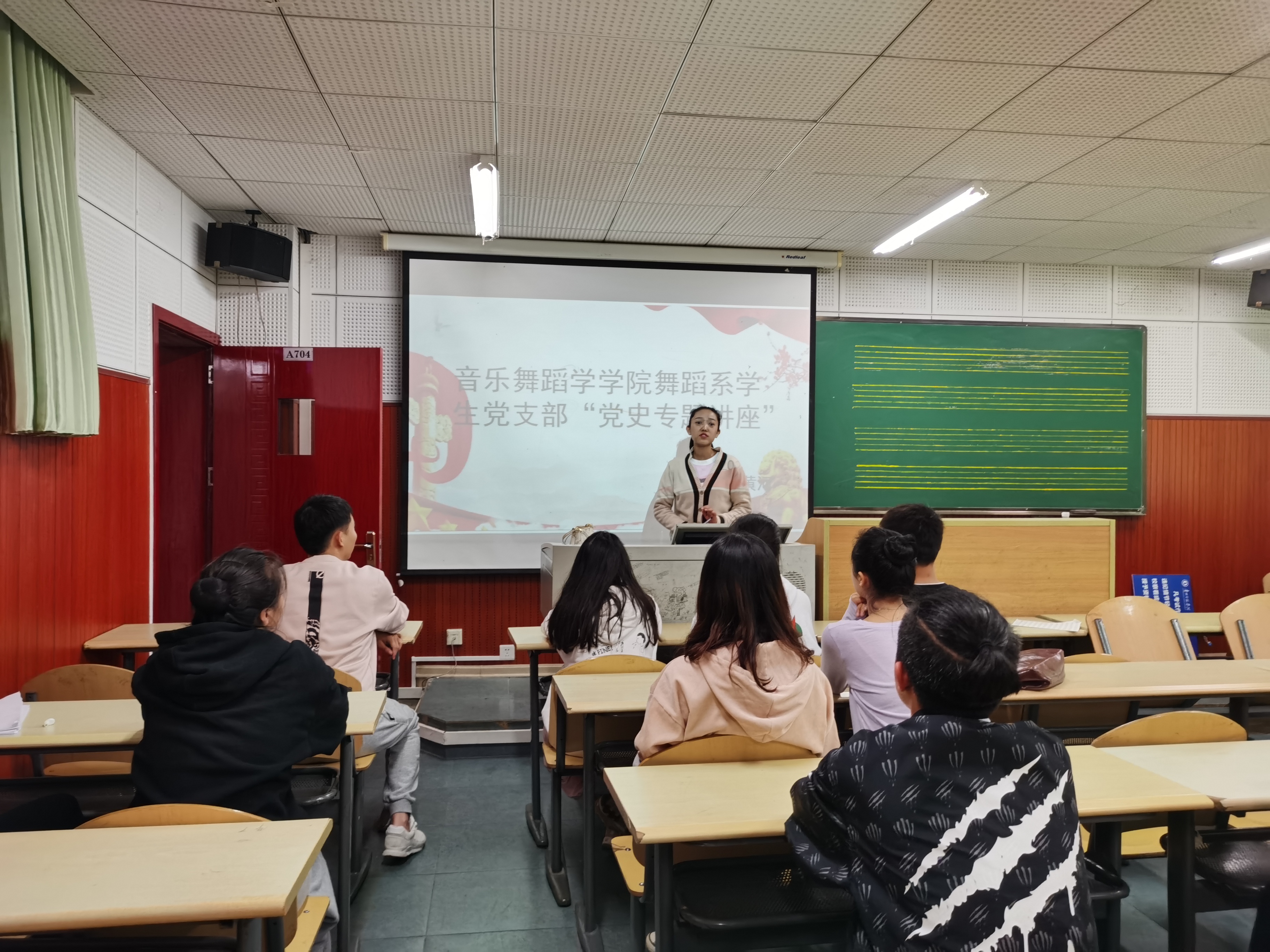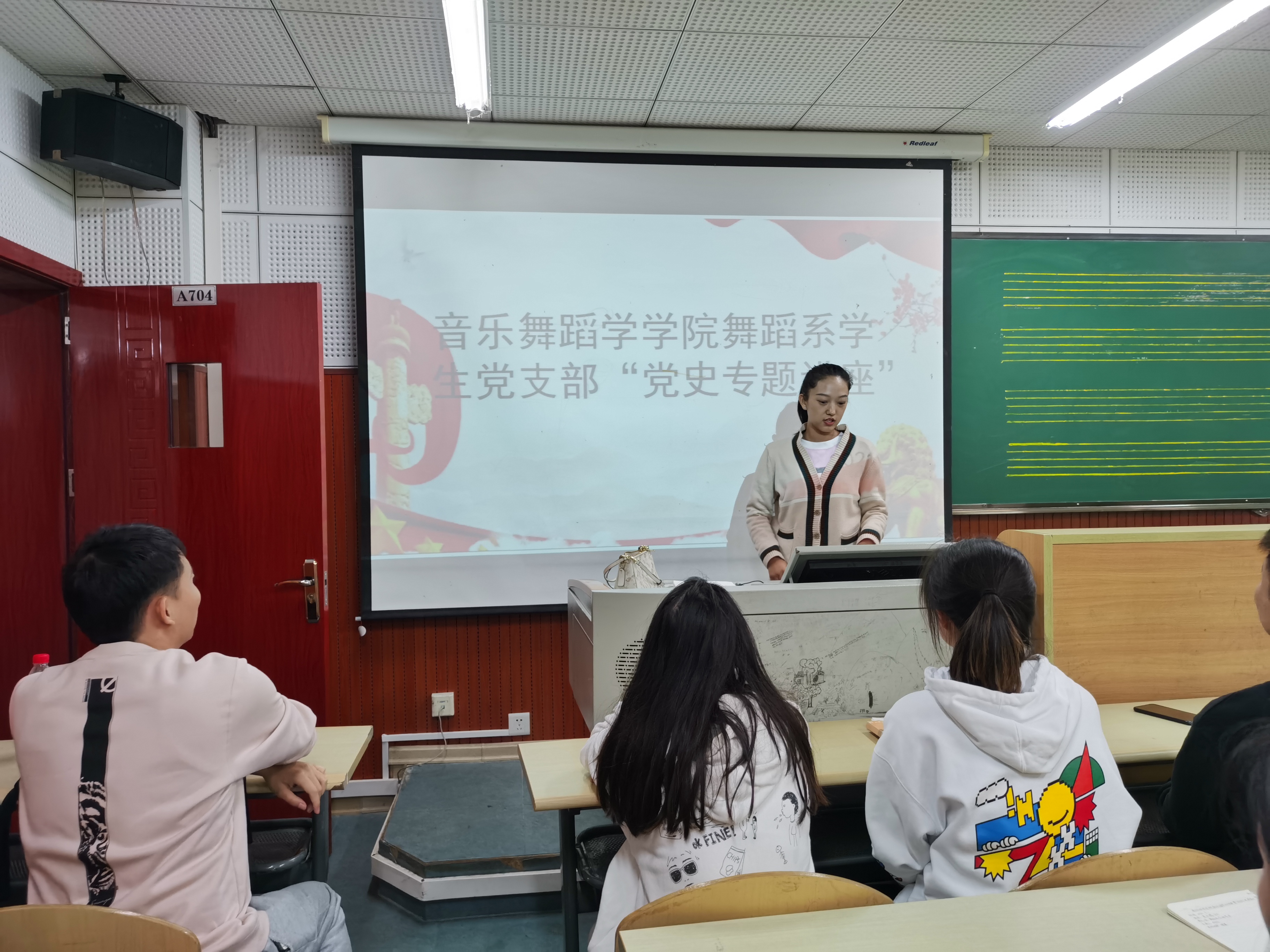 5月7日中午,williamhill英国官网舞蹈系员工党支部书记黄河于逸夫楼704开展“学党史 强信念 跟党走”党史专题讲座,参加学习的有舞蹈系员工党支部全体党员。