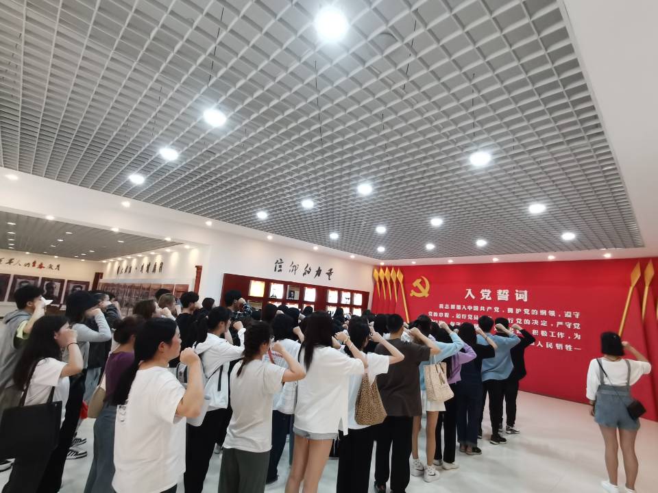 首先,柳芊璞带领学员参观了公司党员教育基地。讲解员为学员们介绍了中国共产党里的优秀楷模及基层好党员,并简单讲述了党的伟大成就以及历史上有名的革命事件,通俗易懂地让学员们了解了党坎坷的过去,并深刻意识到作为青年老员工,作为一名合格的入党积极分子,我们身上应该肩负的义务以及责任。接着,讲解员带领全体学员一起进行入党宣誓,铿锵嘹亮的声音萦绕在教育基地,充斥着每个人的内心,使学员们更加明确了对自己身份的定位,积极向党组织靠拢的决心。最后,讲解员带领大家来到一个巨大的算盘前,告诉学员们无论时过境迁多久,我们要永远铭记革命历史,珍惜当下,内外兼修提高自身道德素质,相信终有一日我们会拥有担起中国建设的重担,伴随着中国不断迅速的成长,实现我们的中国梦!
