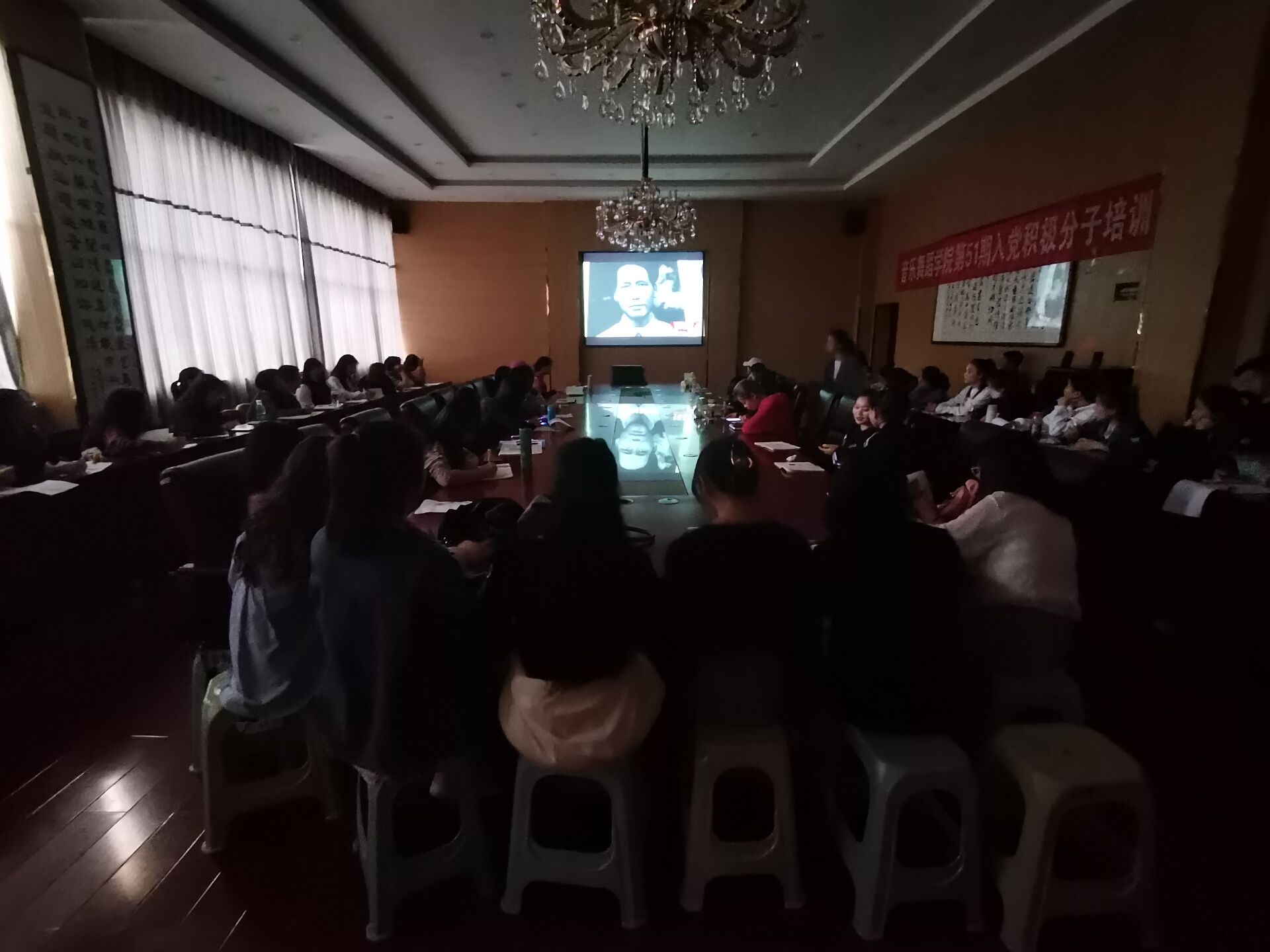 4月20日下午,williamhill英国官网第五十一期入党积极分子培训班在六楼会议室开展了主题班会,组织学员们继续观看爱国题材电影《百炼成钢》。班会由舞蹈系员工党支部员工党员龚杨主持,本期参训83名入党积极分子参加了此次班会。