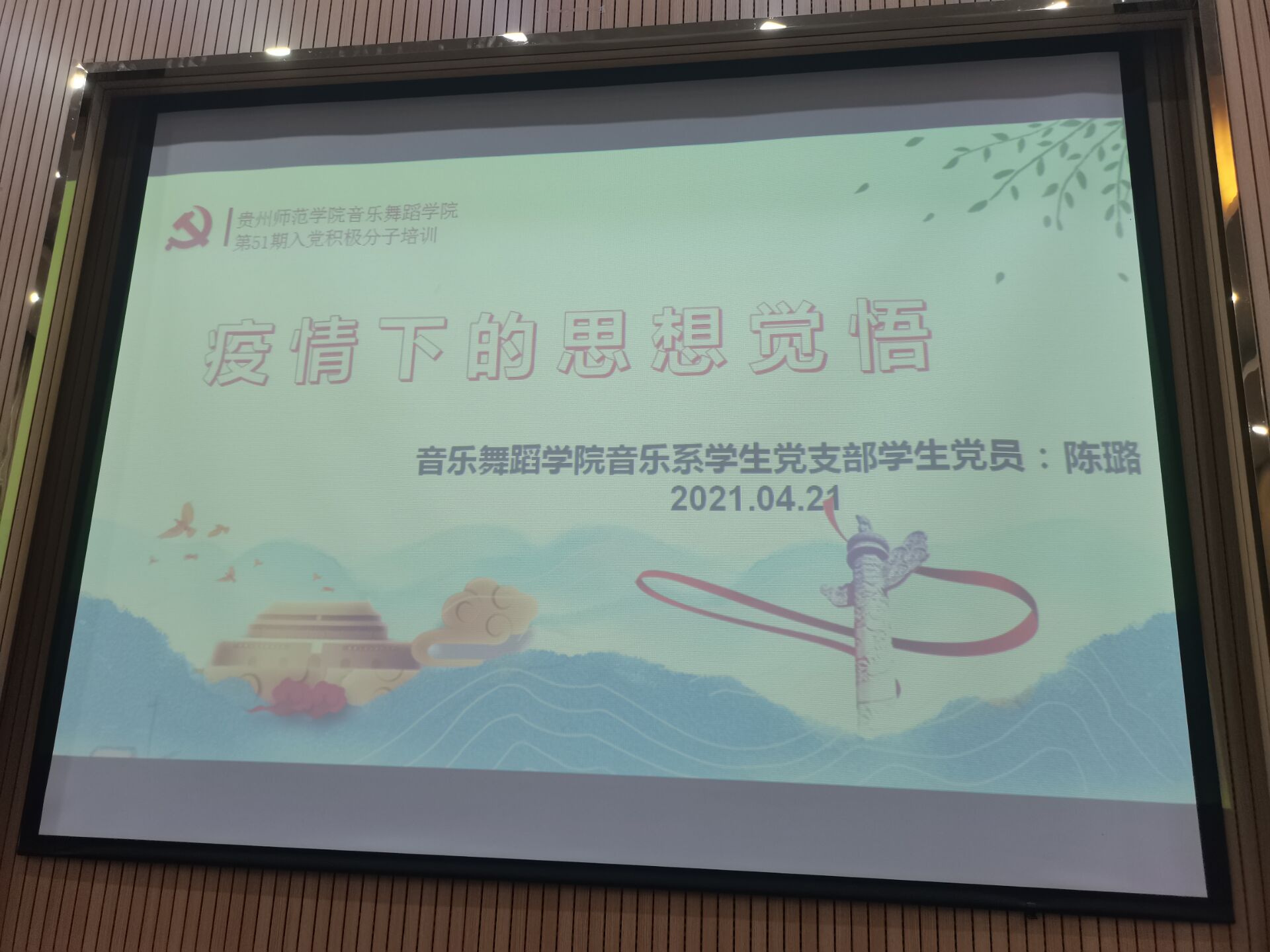 4月21日中午,williamhill英国官网在六楼会议室举办了第五十一期入党积极分子培训班专题讲座。音乐系员工党支部员工党员陈璐主持了本次讲座,并发表主题为“疫情下的思想觉悟”的党课宣讲,本期参训83名入党积极分子参加了此次讲座。