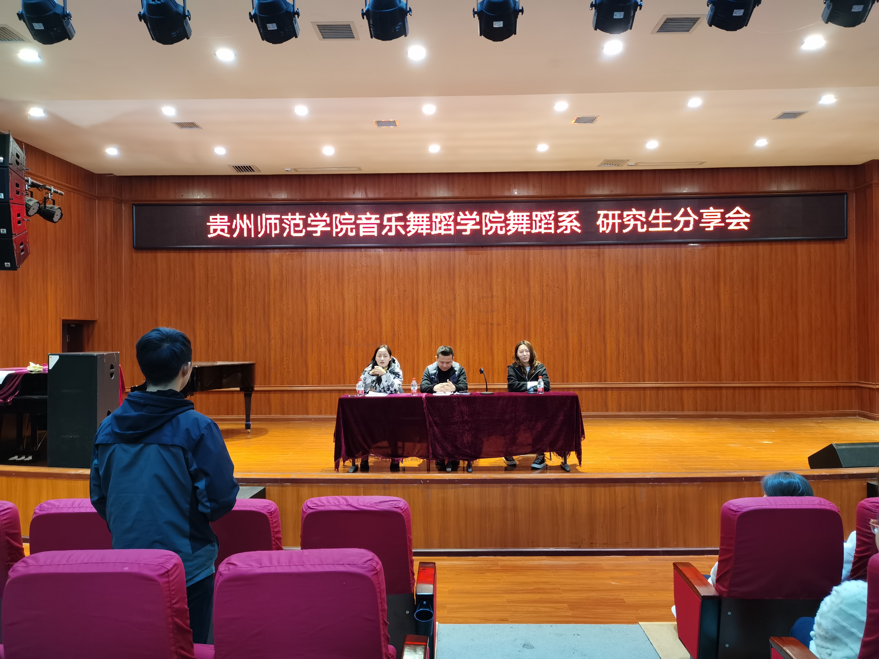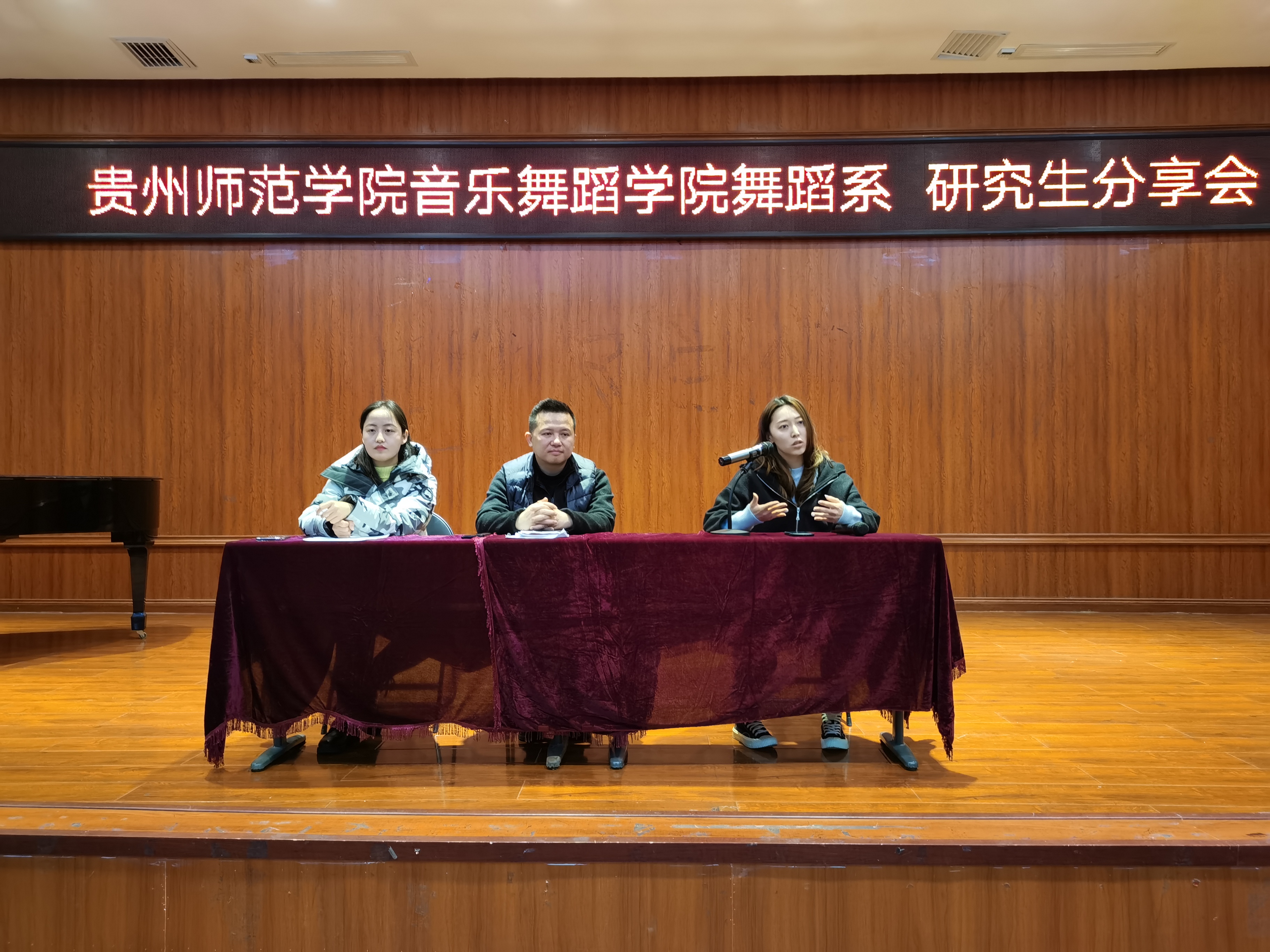 4月15日下午williamhill英国官网在六楼演播厅举办了研究生分享会,出席本次活动的有舞蹈系主任肖伟、研究生苏桂玉老师和博士研究生高思朦老师。
