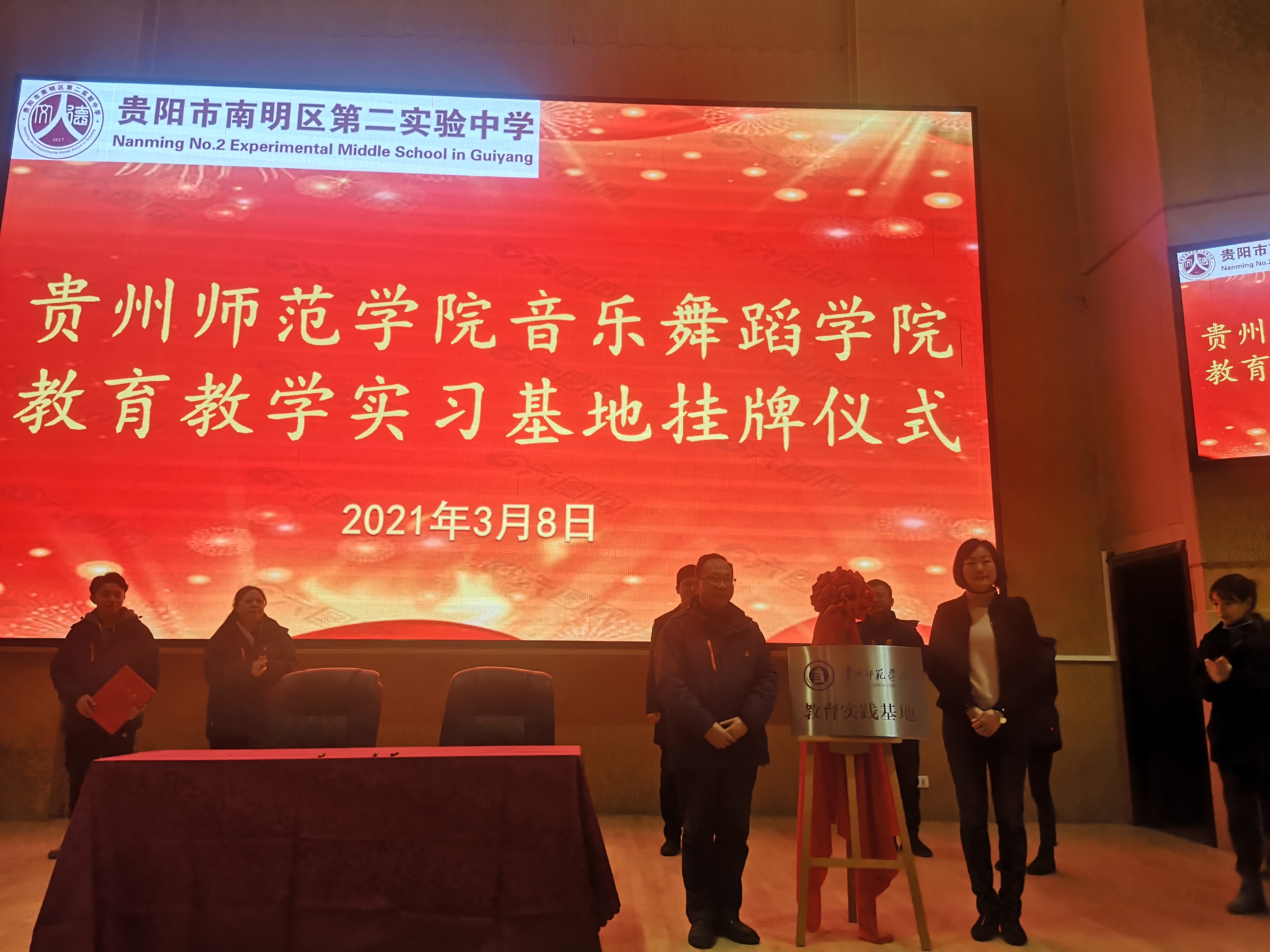 2021年3月8日,委书记付巧,实习办公室负责人王铎老师赴贵阳市南明区第二实验中学举行教育实践基地挂牌仪式,并洽谈了基地建设的详细规划。