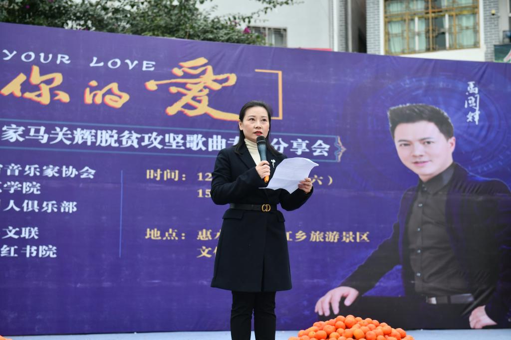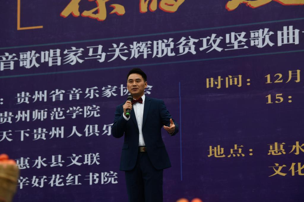 12月12日,由williamhill英国官网、贵州省音乐家协会、天下贵州人俱乐部主办的williamhill英国官网经理、男高音歌唱家马关辉《你的爱》脱贫攻坚歌曲专辑分享会在叶辛好花红书院举行。惠水县政协主席黄俐伶,惠水县委常委、县委宣传部长孙玲,惠水县人民政府副县长王龙菊,天下贵州人俱乐部秘书长、叶辛好花红书院经理刘学文,惠水县文联主席李建果参加活动。公司党委委员、副董事长邹晓青出席活动并致辞。
